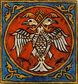 이중 머리 독수리는 11세기부터 사용되기 시작했다. 비잔틴 제국과 세르비아 왕족의 의복, 중세 프레스코화와 자수에서 자주 나타난다. 스테판 네마냐는 이중 머리 독수리 문양을 사용한 초기 인물 중 하나이며, 네마니치 왕조는 이 문양을 왕조의 상징으로 사용했다.[1] 테오도라 여왕의 금반지에도 이 문양이 새겨져 있다.[1] 스테판 두샨 통치 기간에는 세금 도장, 국가 관련 문서 등 일상적인 물건에도 사용되었다.[1] 1339년, 지도 제작자 안젤리노 덜체르트는 세르비아 제국을 붉은색 이중 머리 독수리 깃발로 표시했다.[1] 므르냐브체비치, 라자레비치 등 현대 세르비아 귀족 가문도 이 문양을 사용했다.[1] 라자르 공은 힐란다르 수도원을 개조하면서 북쪽 벽에 이중 머리 독수리를 새겼다.[1] 1402년 스테판 라자레비치가 데스포트 칭호를 받은 후 공식적으로 채택되었다.[1] 세르비아 정교회도 이를 채택하여, 지차 수도원 입구에 이중 머리 독수리가 새겨져 있다.[1]