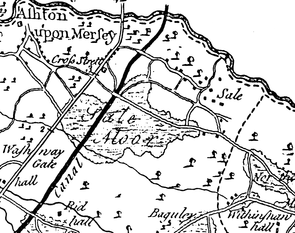 1745년에는 1367년까지 거슬러 올라가는 크로스포드 다리가 헐렸다.[15] 이 다리는 자코바이트 군대의 진격을 늦추기 위해 정부의 명령으로 파괴된 1745년 자코바이트 봉기 중 머시강을 건너는 일련의 다리 중 하나였다. 자코바이트는 맨체스터에 도착하자 다리를 수리하고 이 다리를 사용하여 세일과 알트링엄으로 소규모 부대를 보냈다. 그들의 의도는 자코바이트가 체스터로 향하고 있다고 당국을 속이는 것이었다. 이 계략은 성공적이었고, 자코바이트 본대는 나중에 체들과 스톡포트를 통해 남쪽으로 행진했다.[16]