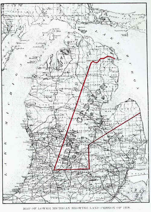 미시간 중부 지역은 식민지화 이전에는 주로 오지브웨족의 영토였다. 1800년대 후반 루이스 카스는 세인트제임스 조약을 협상했는데, 이 조약으로 오지브웨족의 토지가 넘어가 오늘날의 미시간 중부 지역 상당 부분을 형성하게 되었다. 이리 운하 개통으로 오하이오에서 북쪽으로 인구가 증가하면서 수많은 정착민들이 이 지역으로 몰려들었다. 이 지역의 첫 번째 정착민들은 목재 산업을 위해 토지를 개간했다.