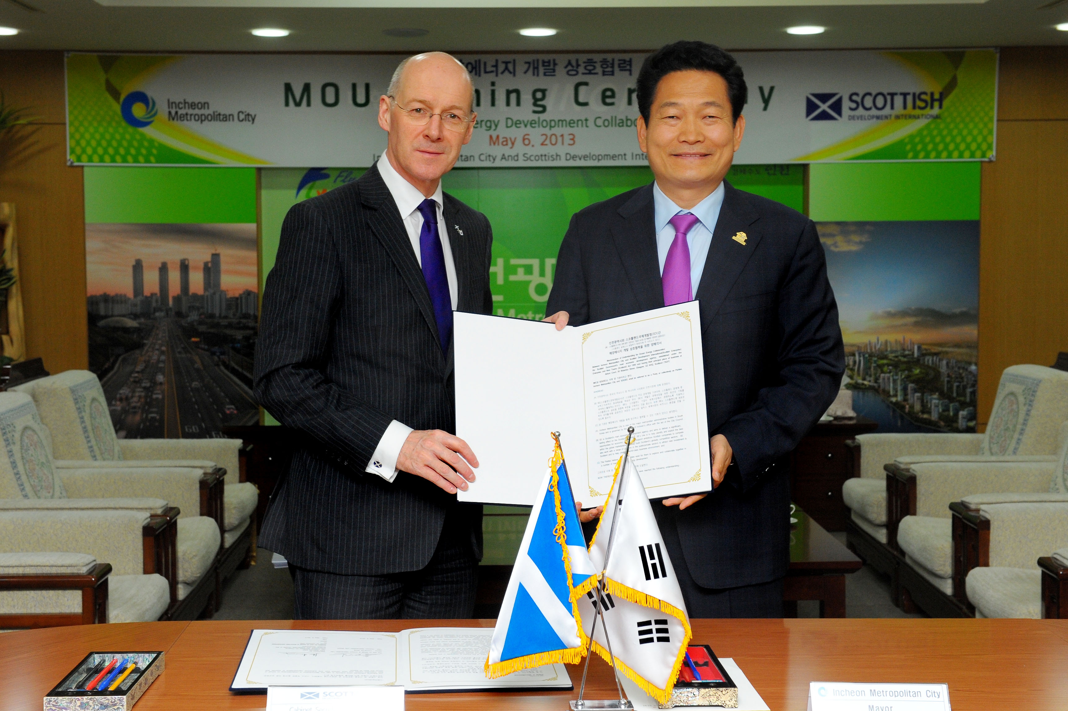 또한 2014년 아시안 게임 개최를 위한 준비에 힘썼으며,[39] 2012년에는 환경 분야의 세계은행이라 불리는 국제연합의 Green Climate Fund|녹색기후기금영어을 인천광역시 송도국제도시에 유치했다.[40][41]