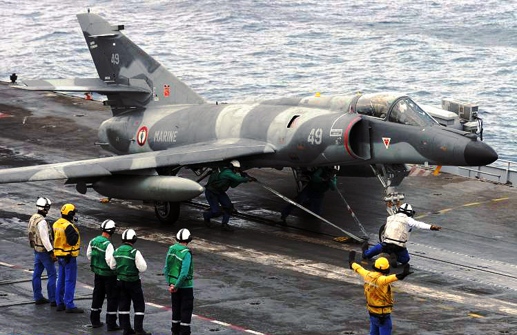 쉬페르 에탕다르의 프랑스 해군 인도는 1978년에 시작되었으며, 첫 번째 비행대인 ''플로틸 11F''는 1979년 2월에 작전 투입되었다.[39] 공중전 능력이 없었기 때문에 프랑스는 대체할 전투기를 찾지 못해 크루세이더 전투기의 수명을 연장해야 했다.