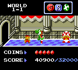 VS GAME두 명의 플레이어가 게임 링크 케이블로 연결된 두 개의 게임보이 컬러를 사용하여 스테이지를 경주하는 모드이다.[23] 사라지는 블록을 활용하여 상대를 방해할 수 있다.[29] 싱글 플레이어 모드인 '너 vs 부'에서는 부와 경주하며, 플레이어의 최고 기록에 따라 부의 속도가 설정된다.[1][21]