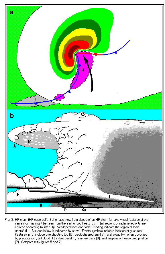 저강수 슈퍼셀 (LP) | 강수량이 적고, 때로는 눈에 보이는 강수 구역이 없음 |