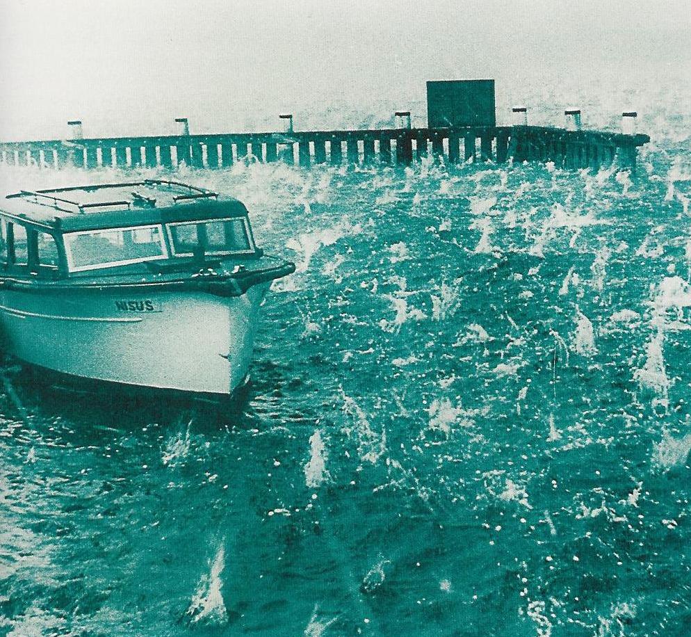 : 셀의 유입 측에 있는 약한 반사도의 "노치"로, ''V-노치''는 아니다.[9]