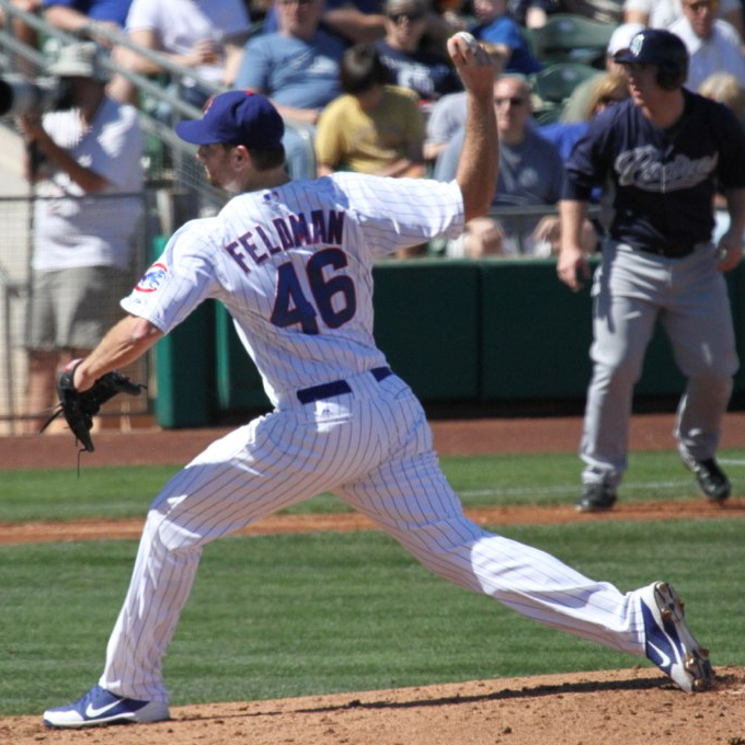 2012년 11월 27일, 펠드먼은 시카고 컵스와 1년 계약을 맺었으며, 계약금 600만달러에 인센티브 100만달러가 추가될 수 있었다.[106] 단장 제드 호이어는 그를 선발 투수로 기용할 계획이라고 밝혔다.[107] 2013년 5월 24일, 펠드먼은 신시내티 레즈 투수 브론슨 아로요를 상대로 생애 첫 홈런을 쳤다. 그는 시즌 중반 트레이드되기 전까지 컵스에서 7승 6패, 평균자책점 3.46을 기록했다.[12]