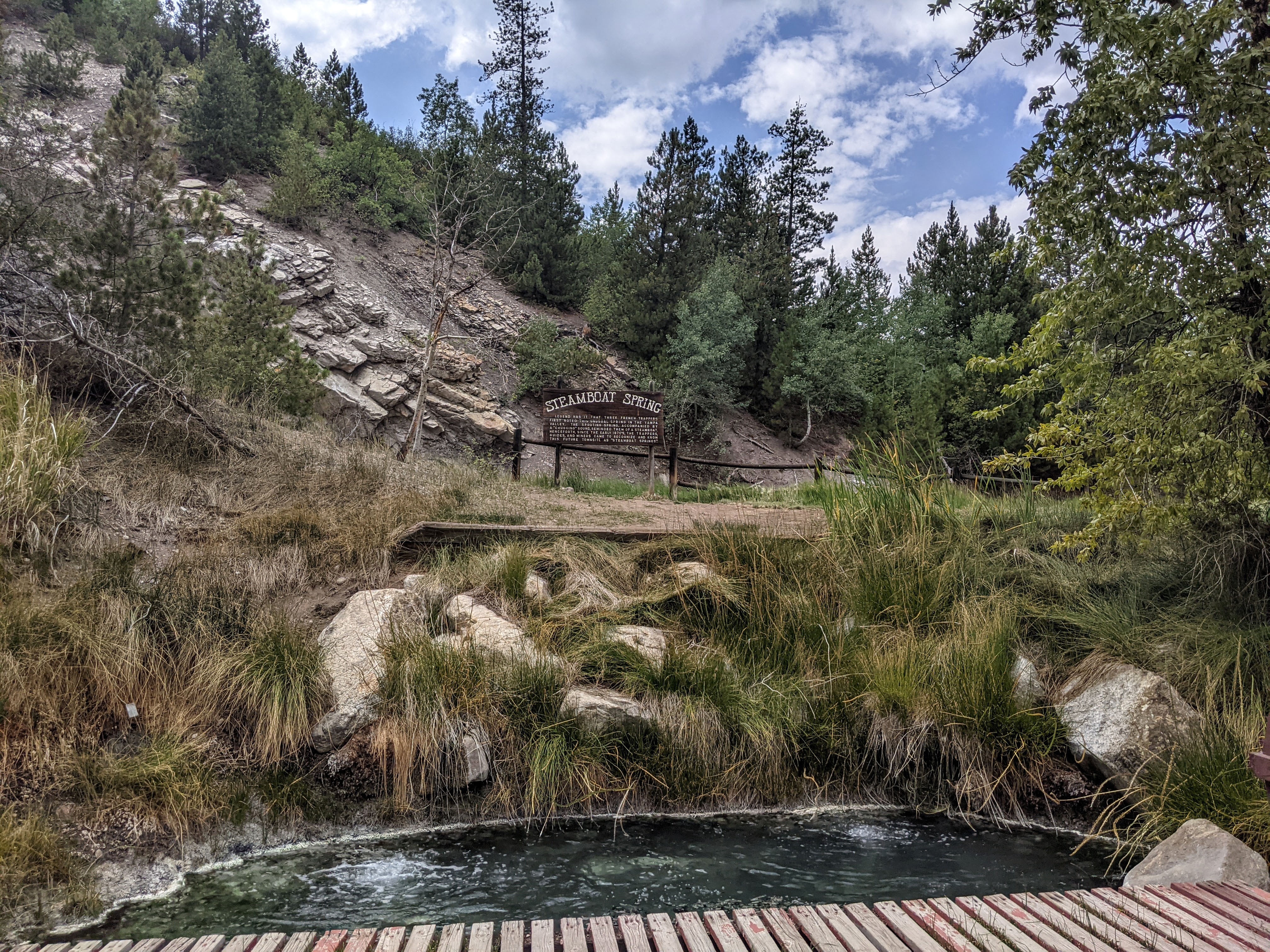 얌파 계곡과 주변 지역에는 여러 개의 지열 온천이 있다. 이 도시는 현재 도서관과 구 기차역 근처에 위치한 스팀보트 스프링(Steamboat Spring)의 이름을 따서 명명되었다. 이 샘의 이름은 초창기 정착민들에게 물이 끓는 소리가 증기선 소리처럼 들렸기 때문에 붙여졌다.[1]이 지역에는 대중에게 공개된 온천이 있다.[1]