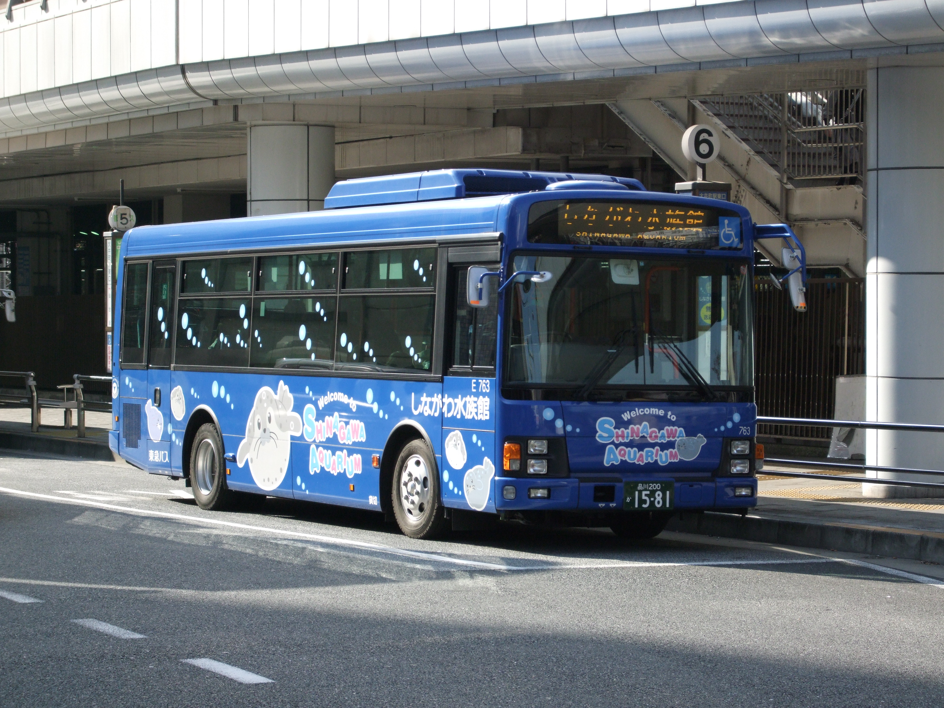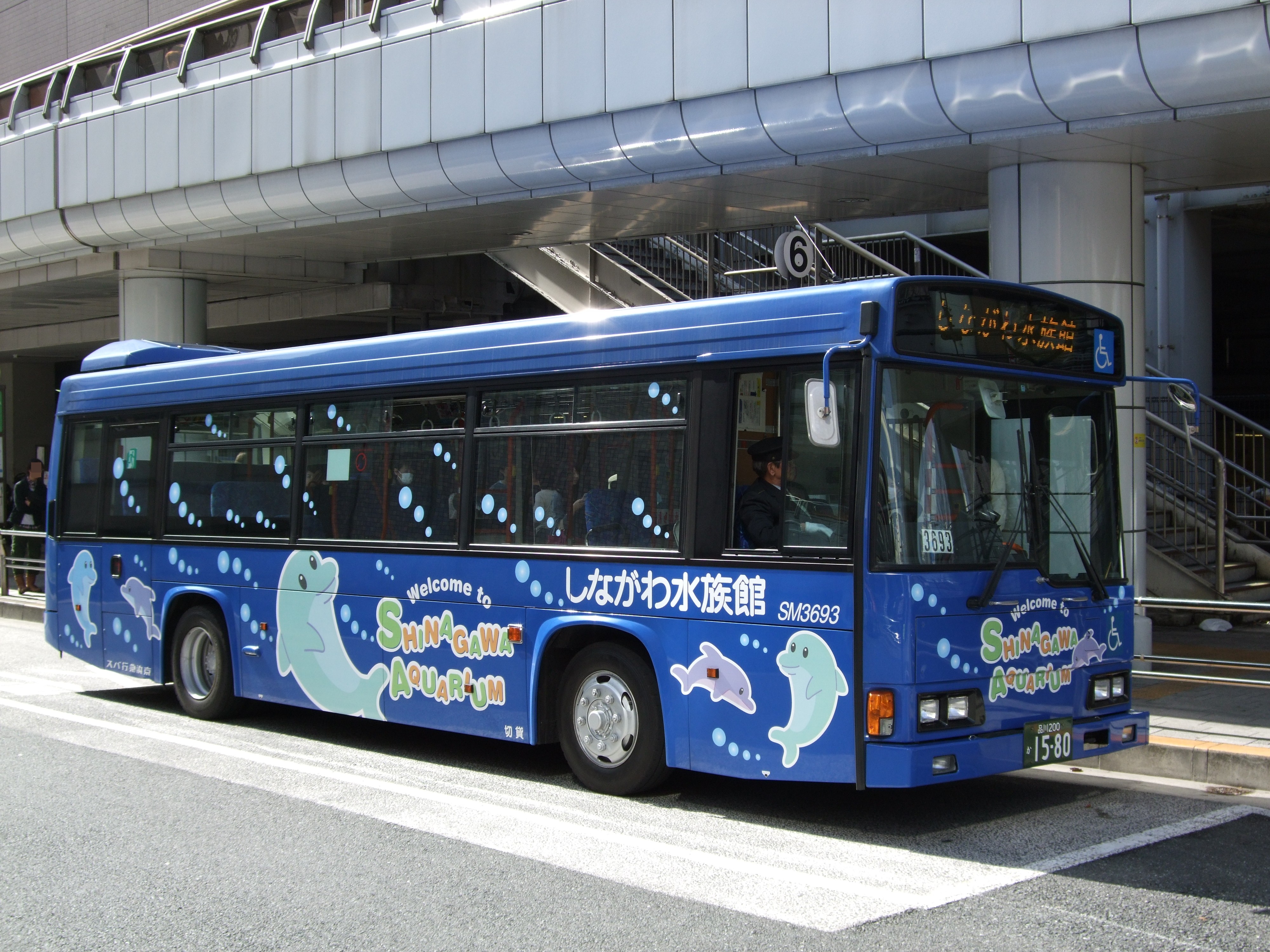 게이힌 토호쿠선 오모리역에서는 야시오 파크 타운 순환 버스를 타고 "시나가와 수족관 앞"에서 하차하면 된다. (게이힌 급행 버스 운행)
