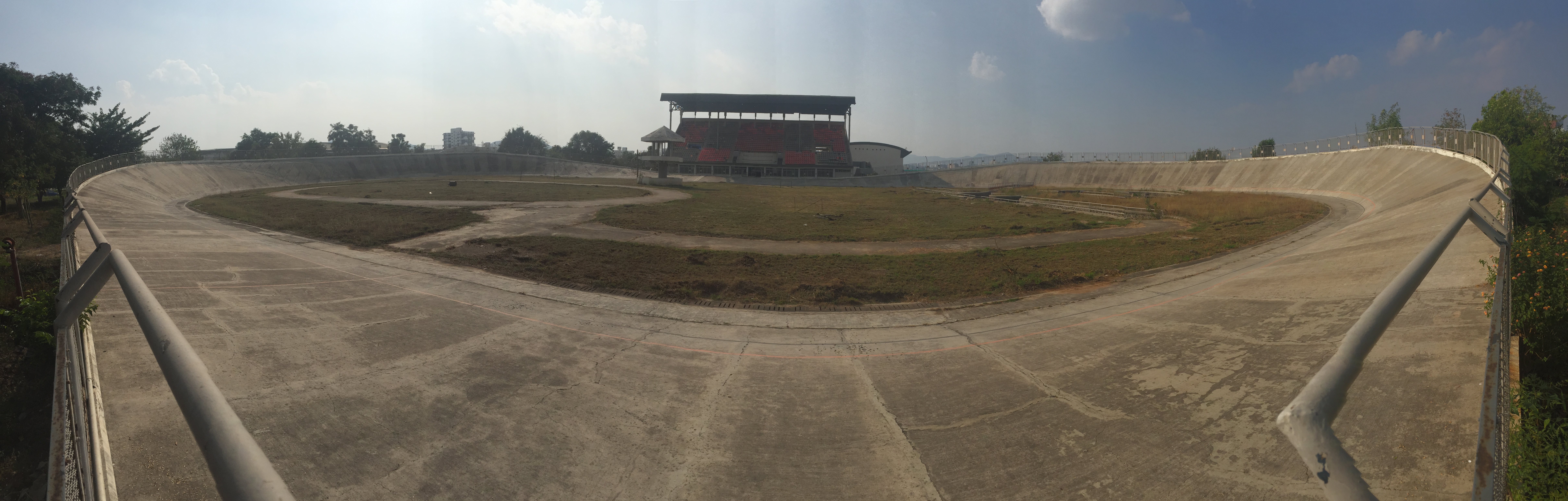 1주 333m의 야외 벨로드롬으로, 표면은 콘크리트로 만들어졌다. 1993-94년 제3회 전국 경기 대회의 주요 경기장이었지만, 이후에는 주요 행사가 열리지 않아 사용되지 않았다. 2014년에는 정부로부터 10크로어 루피의 유지 보수 보조금을 받아 경기장 전체를 개보수하면서 벨로드롬 개보수가 최우선 과제가 되었다고 발표되었다. 당시 벨로드롬은 황폐한 상태였다.[15]