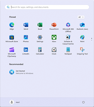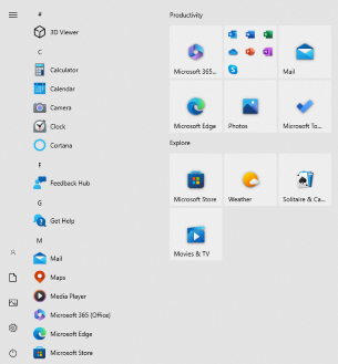 Windows 10, version 20H2 및 이후 버전의 시작 메뉴