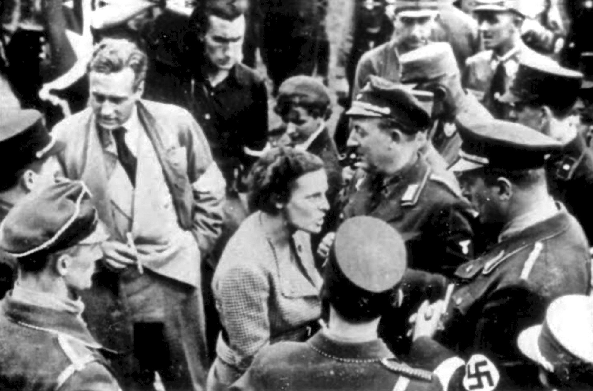 촬영을 두고 나치 당 간부와 언쟁을 벌이는 레니 리펜슈탈
