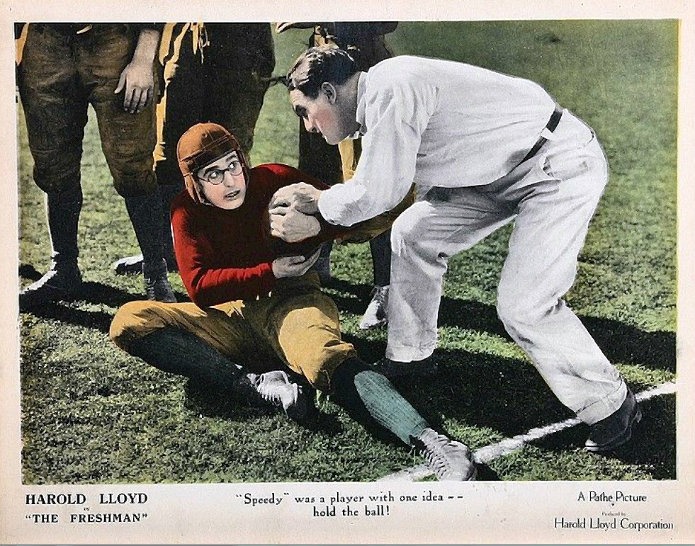 해롤드는 대학교에서 인기를 얻는 방법으로 영화 속 영웅을 따라 하기로 결심한다. 그는 작은 춤을 추거나 "스피디"라는 별명을 사용하는 등 영화 속 인물을 흉내 낸다.[1] 그러나 칼리지 캐드라는 학생은 그를 끊임없이 놀림감으로 만들고, 신입생인 해롤드는 자신이 놀림받는다는 사실조차 알지 못한다.[1] 해롤드는 자신이 인기가 많다고 생각하지만, 실제로는 학교 전체의 웃음거리였다.[1] 그의 유일한 진정한 친구는 집주인의 딸인 페기였다.[1]2. 3. 풋볼 팀 입단과 좌절