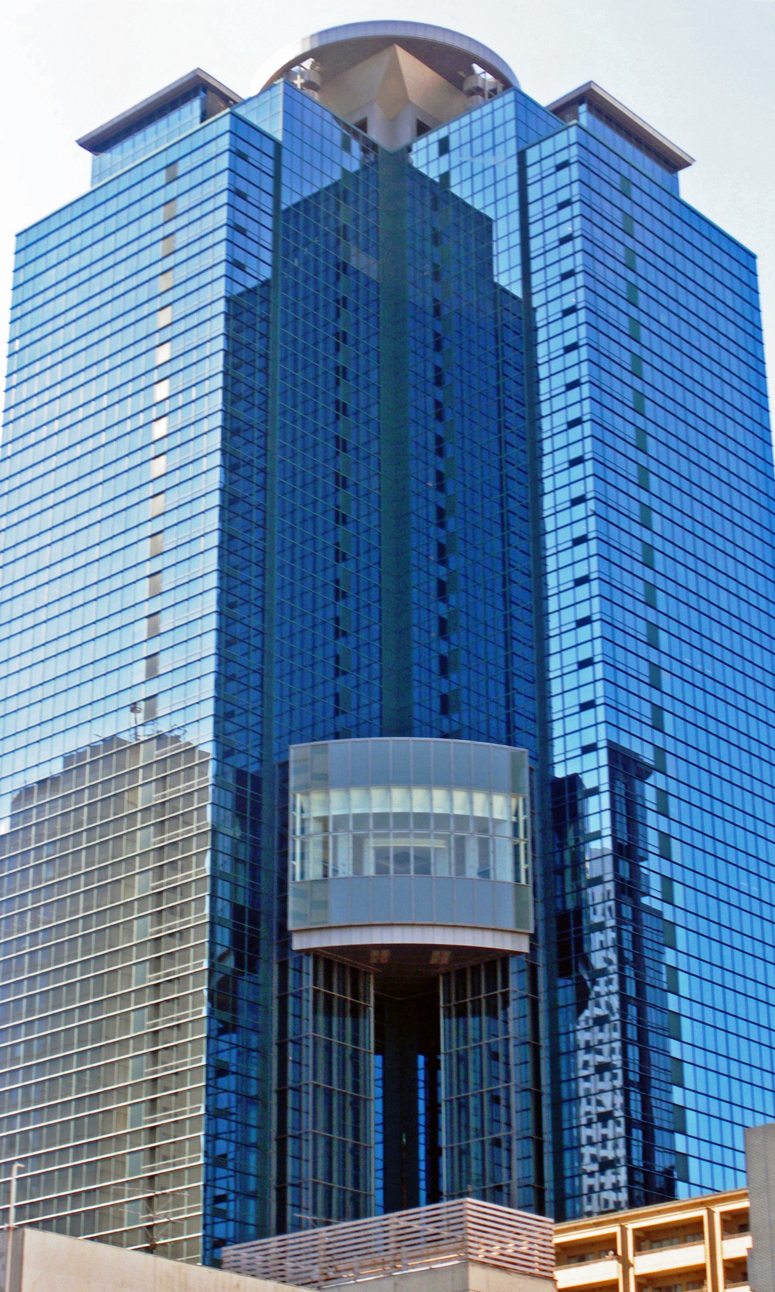 2003년 1월 준공된 선명한 푸른색 유리로 된 빌딩으로, 꼭대기는 날개를 모티프로 했다. 20층에 스카이 로비를 배치하고, 엔트런스 홀인 갤러리아에서 시스루 셔틀 엘리베이터로 직통 수송, 스카이 로비에서 고층 로컬 엘리베이터로 갈아타는 교통 계획을 채택했다.[7]