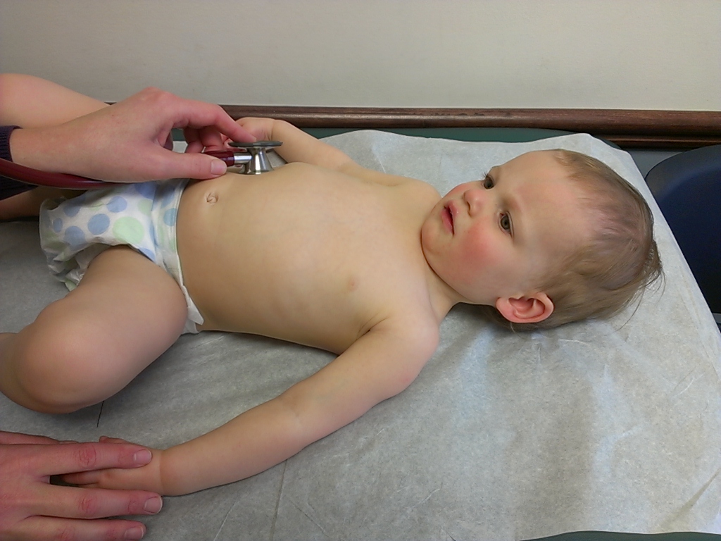 청진은 청진기를 사용하여 심장 박동, 호흡음, 장 운동 소리 등 체내에서 발생하는 소리를 듣고 이상 유무를 판단하는 검사이다.[42]