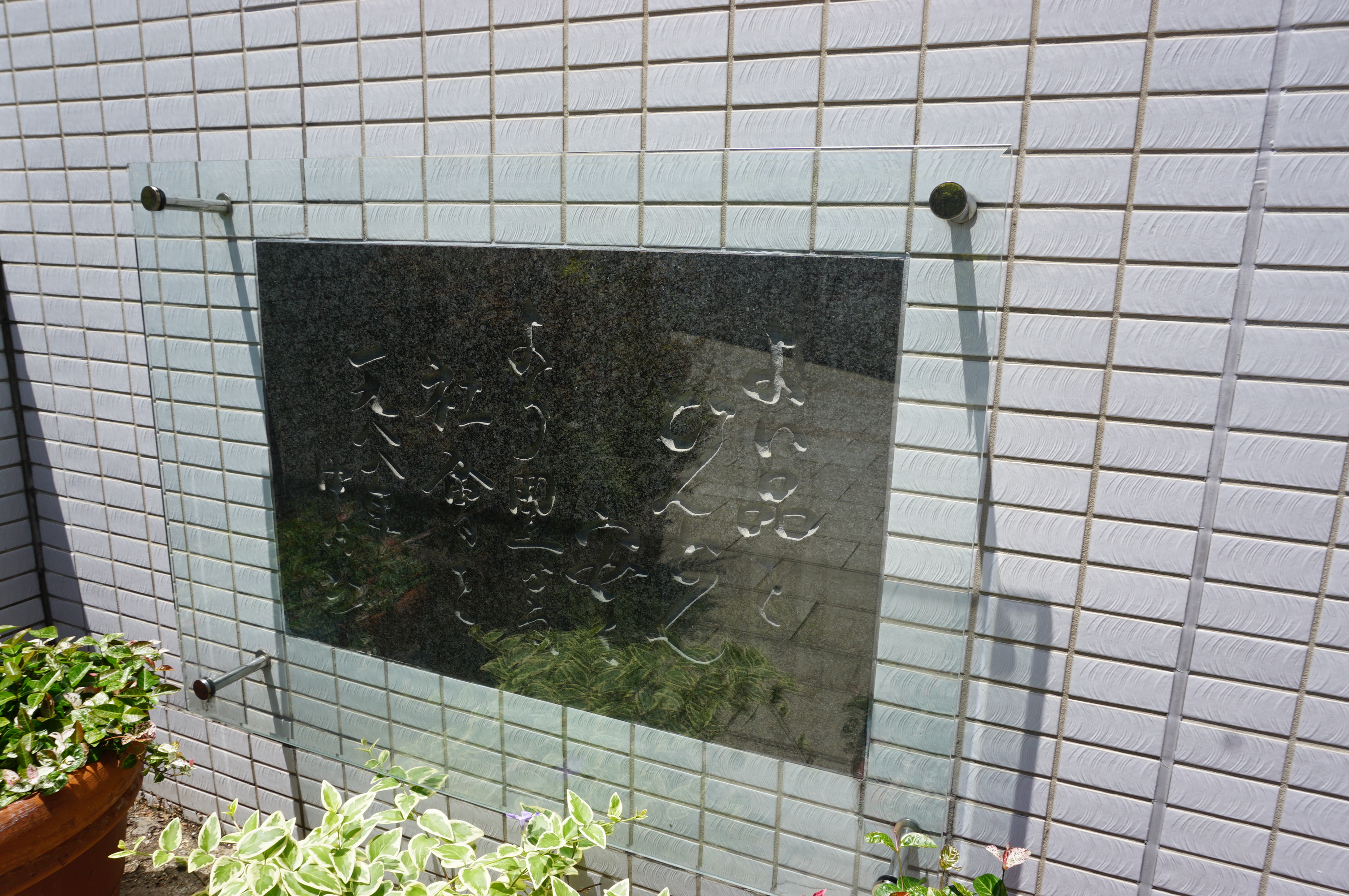나카우치 이사오의 친필로 쓴 "좋은 물건을 どんどん 싸게..."의 비석