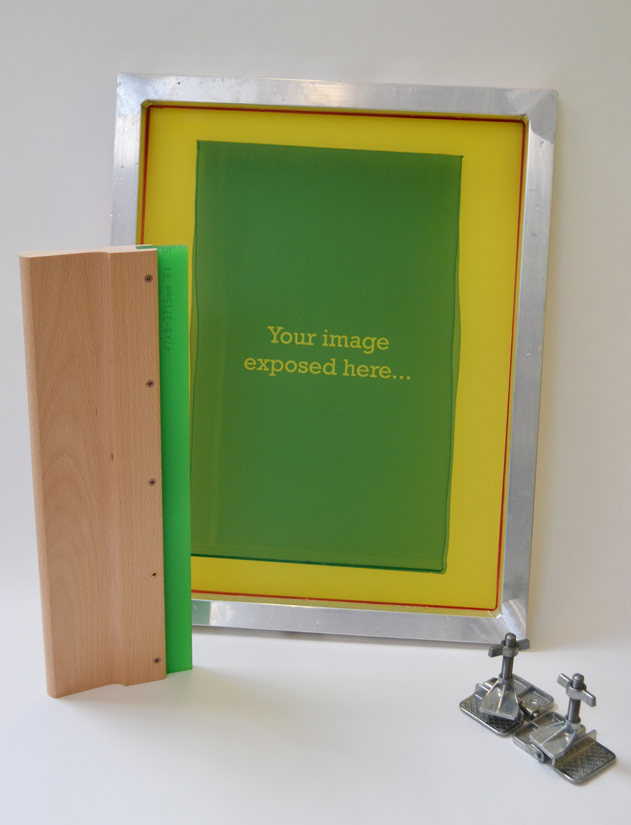 # 투명한 오버레이 위에 원본 이미지를 생성한다. 이미지는 오버레이에 직접 그리거나 칠할 수 있고, 복사기로 복사하거나 컴퓨터 프린터로 인쇄할 수도 있지만, 잉크를 칠할 영역은 불투명해야 한다. 자외선을 차단하는 모든 재료를 필름으로 사용할 수 있으며, 카드 용지도 가능하다. 흑백 양화(스크린에 투사)를 사용할 수도 있다. 그러나 전통적인 판 만들기와 달리, 이러한 스크린은 일반적으로 필름 양화를 사용하여 노출된다.