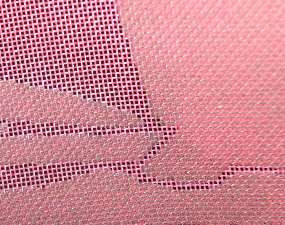 # 인쇄할 디자인의 세부 사항에 따라 여러 다른 메쉬 수를 사용할 수 있다. 스크린을 선택한 후에는 사진 유제로 스크린을 코팅하고 건조해야 한다. 건조되면 인쇄물을 굽거나 노출시킬 수 있다.