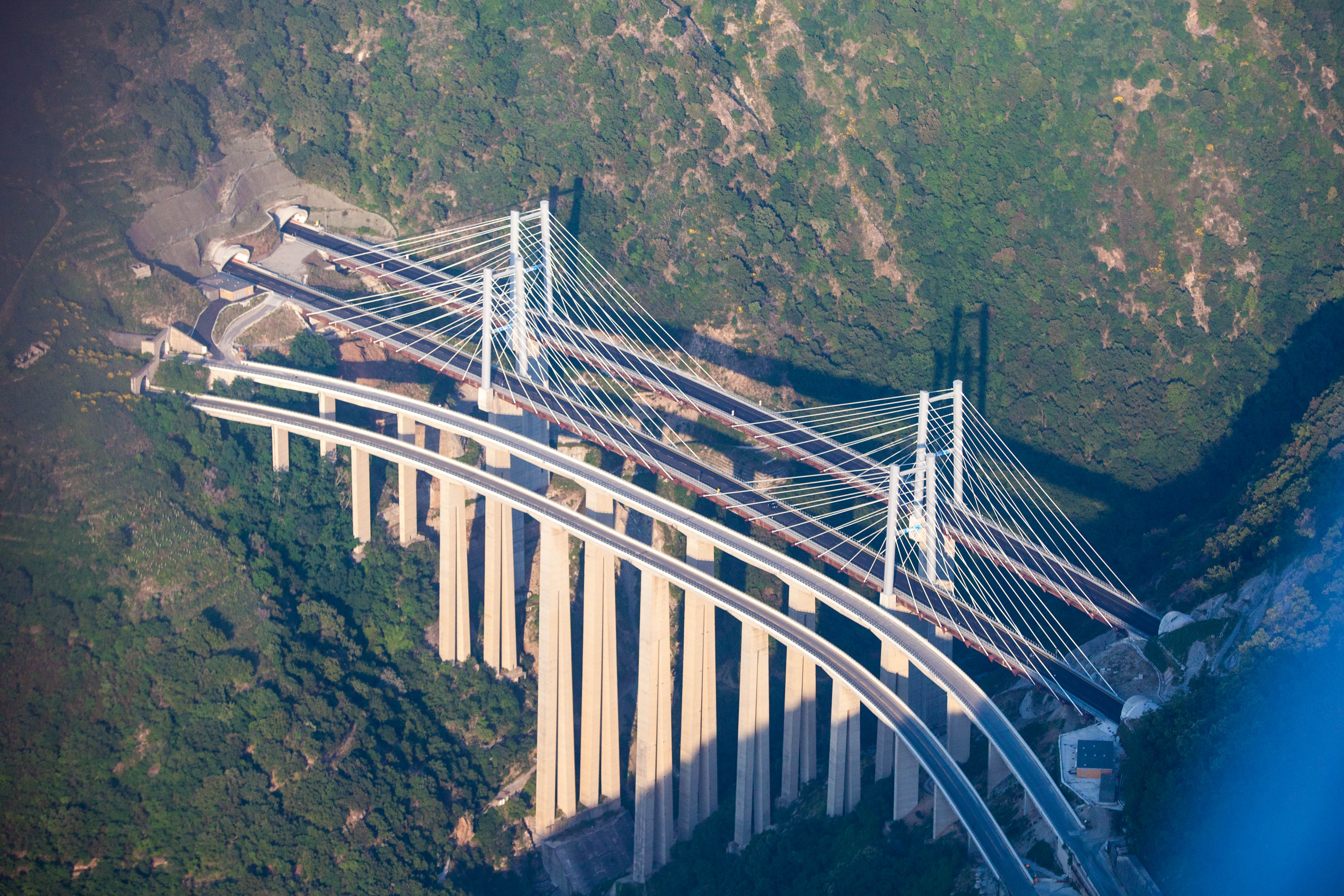 • 라고 고가교 (Viadotto Rago)[27]: 모라노 칼라브로에 위치한다. 길이는 399m, 계곡 바닥 높이는 147m, 지주 높이는 150m이다. 122m 길이의 금속 빔이 특징이다.