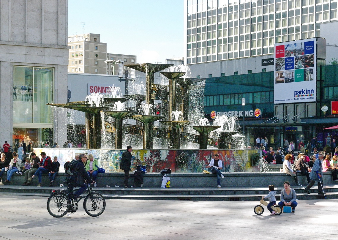 세계 시계(Weltzeituhrde)는 베를린 알렉산더 광장에 있는 대형 탑 형태의 세계 시계이다. 금속 원형 구조물의 표시를 통해 전 세계 148개 주요 도시의 현재 시간을 알 수 있다. 1969년 동독에 의해 건립된 이후로 관광 명소이자 만남의 장소로 자리 잡았다.3. 4. 민족 우정의 분수 (Brunnen der Völkerfreundschaft)