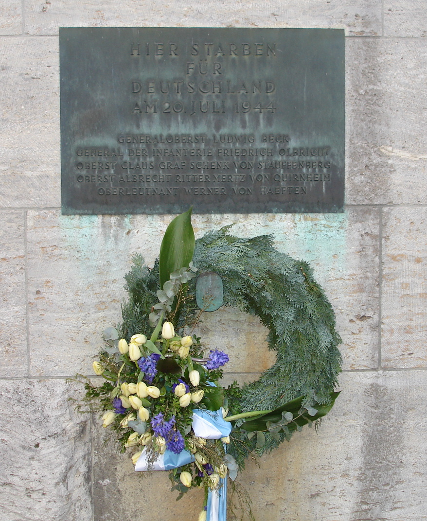 현재 크비른하임과 그의 공모자들이 총살된 벤들러블록 벽에는 기념비가 있다.