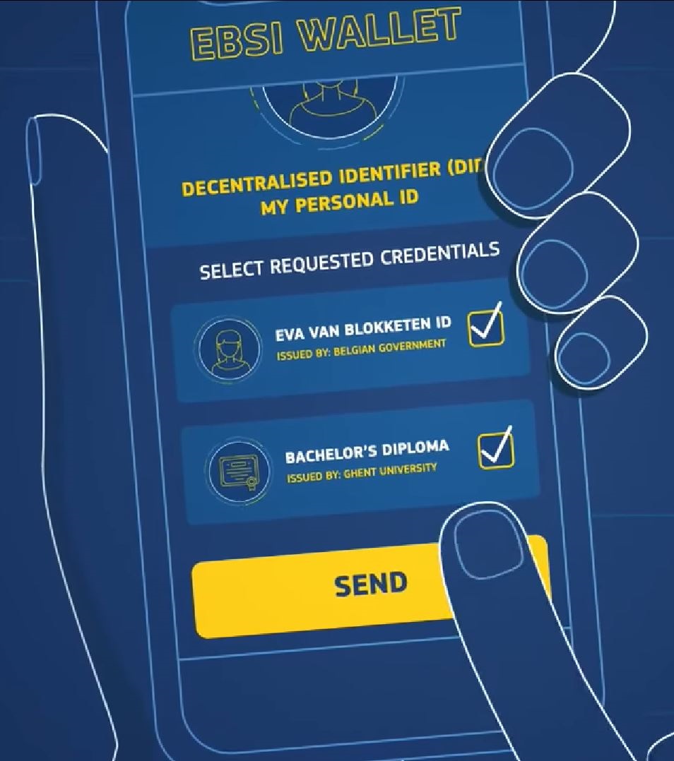 일부 암호화폐 지갑은 특정 프레임워크와 호환되도록 특별히 설계되었다. 유럽 연합은 eIDAS 호환 유럽 자기 주권 신원 프레임워크(ESSIF)를 만들고 있으며, 이는 유럽 블록체인 서비스 인프라(EBSI)에서 실행된다. EBSI 지갑은 (안전하게) 정보, eID를 제공하고 '거래'에 서명하도록 설계되었다.[5]