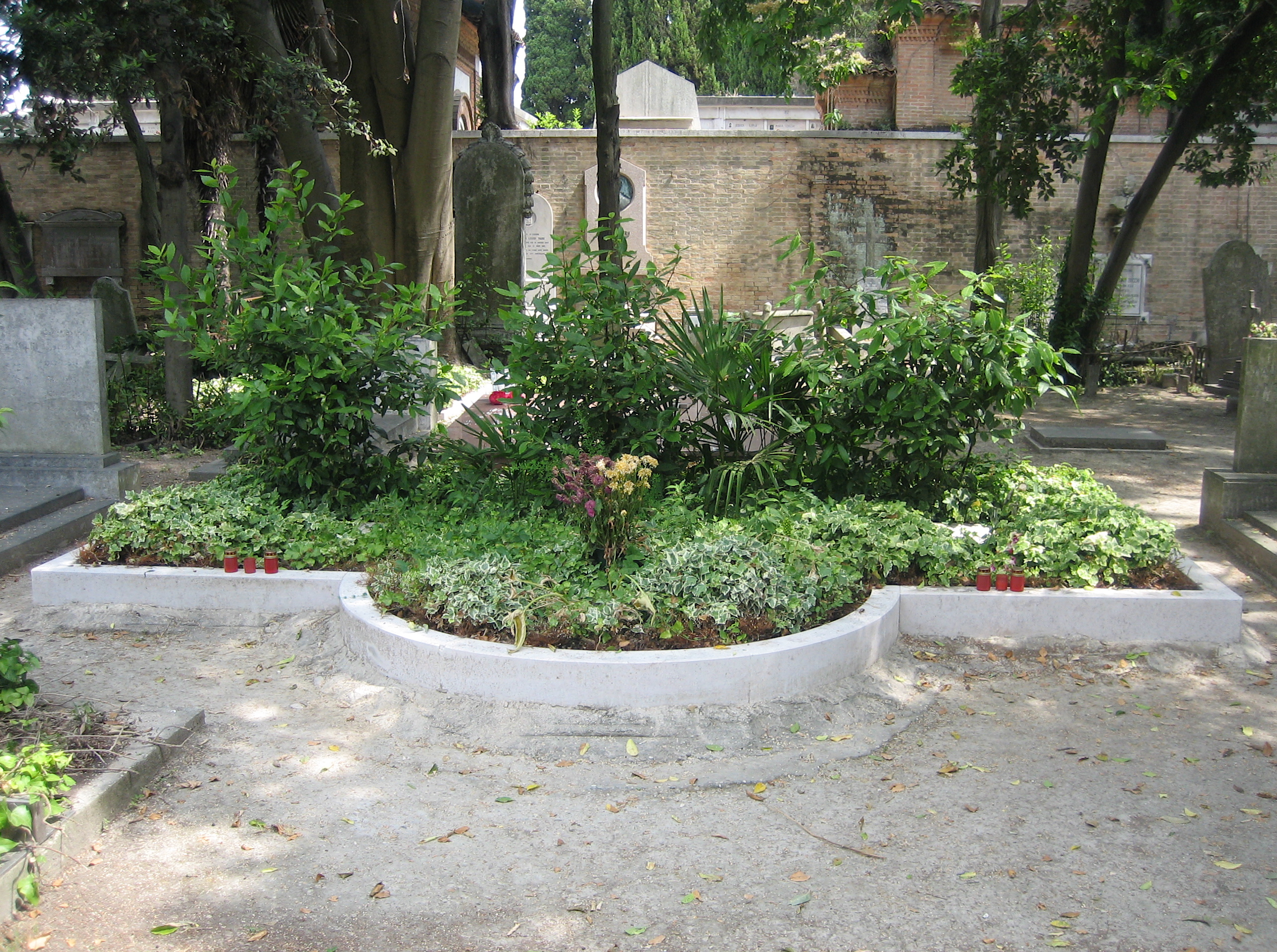 에즈라 파운드와 올가 루지의 묘소(산 미켈레 묘지, 산 미켈레 섬)