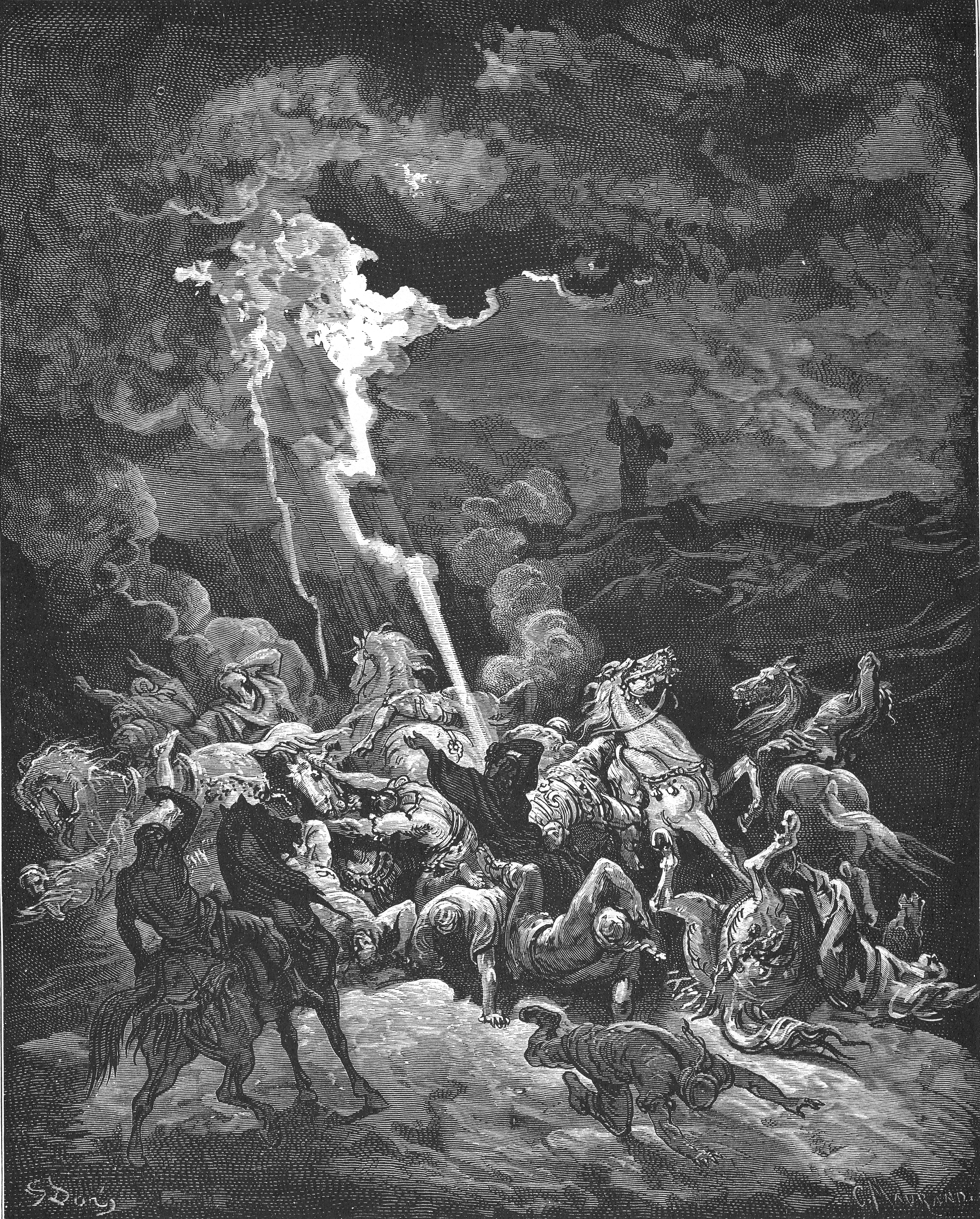 엘리야와 바알, 아세라 예언자 850명의 대결에서, 바알과 아세라의 예언자들이 먼저 제물을 바치고 신을 불렀으나 응답이 없었다. 그러나 엘리야가 야훼를 부르자 곧바로 불이 내려왔다. 엘리야는 백성들에게 바알의 예언자들을 처형하게 했고, 곧 비가 내려 가뭄이 끝났다.