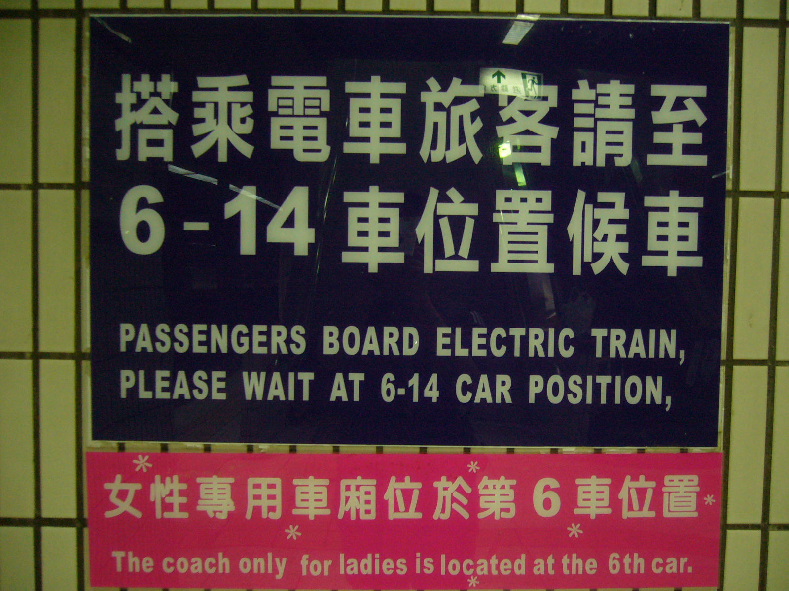 타이완 철도 관리국(TRA)은 2006년 6월부터 타이베이시 부근 전동차에 여성 전용 차량을 설치했지만, 남성 차별이라는 반대 의견으로 약 3개월 만에 폐지되었다.[65][66]