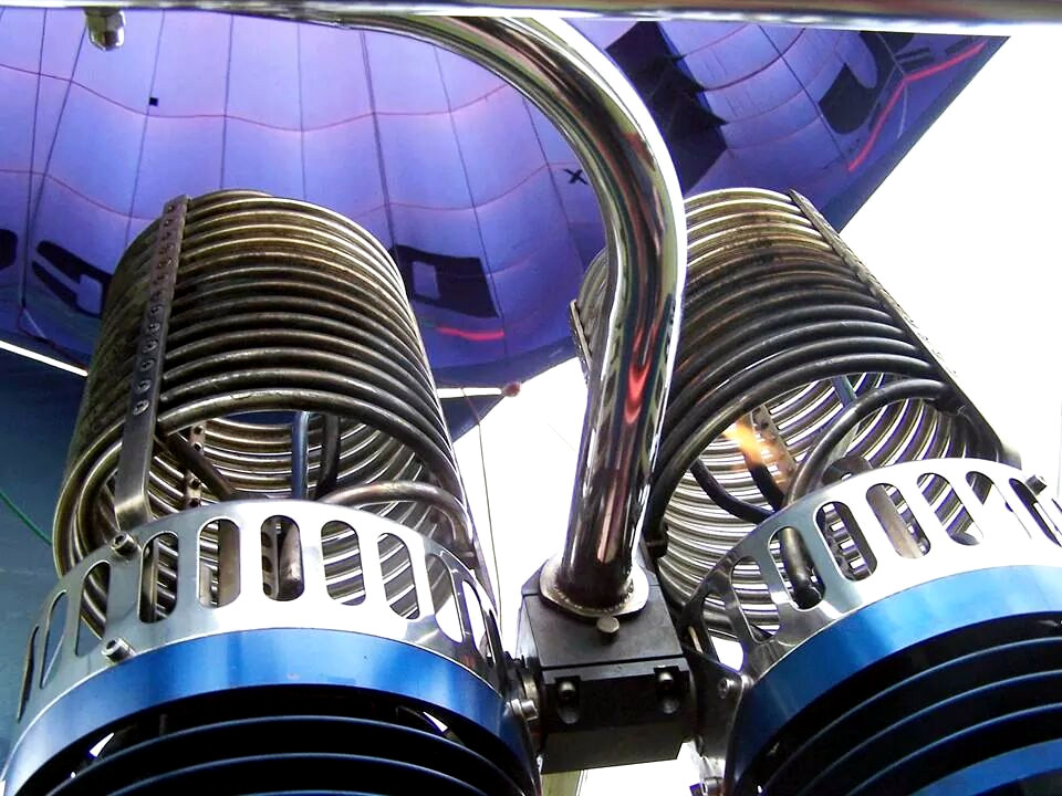 두 개 이상의 버너가 있는 경우, 조종사는 원하는 열 출력에 따라 한 번에 하나 이상의 버너를 사용할 수 있다. 각 버너에는 들어오는 액체 프로판을 예열하기 위해 불꽃이 통과하는 금속 프로판 튜브 코일이 있다. 버너 장치는 봉투 입구에 매달리거나 바구니 위에 단단히 고정될 수 있다. 짐벌에 장착되어 조종사가 불꽃을 조준하고 봉투 원단이 과열되는 것을 방지할 수 있는 버너도 있다.