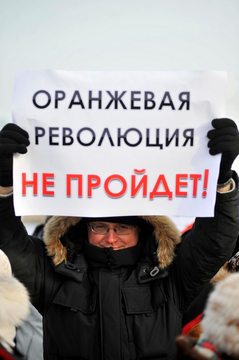 11월 21일 개표 결과 야누코비치의 당선이 발표되자, 빅토르 유셴코 지지층은 선거 부정을 주장하며 키이우를 중심으로 항의 시위를 벌였다. 매스미디어를 통해 이 사건이 전 세계에 보도되면서, 유럽과 미국은 유셴코를, 러시아는 야누코비치를 지지하는 보도 경쟁을 벌였다. 세계 여론은 민주주의적이지 않은 선거라는 서구 언론의 입장에 기울었고, 러시아의 행동은 제약받았다. 결국 EU와 미국의 지원을 받은 야당의 압력으로 재투표가 실시되었고, 12월 28일 유셴코가 대통령으로 당선되었다.