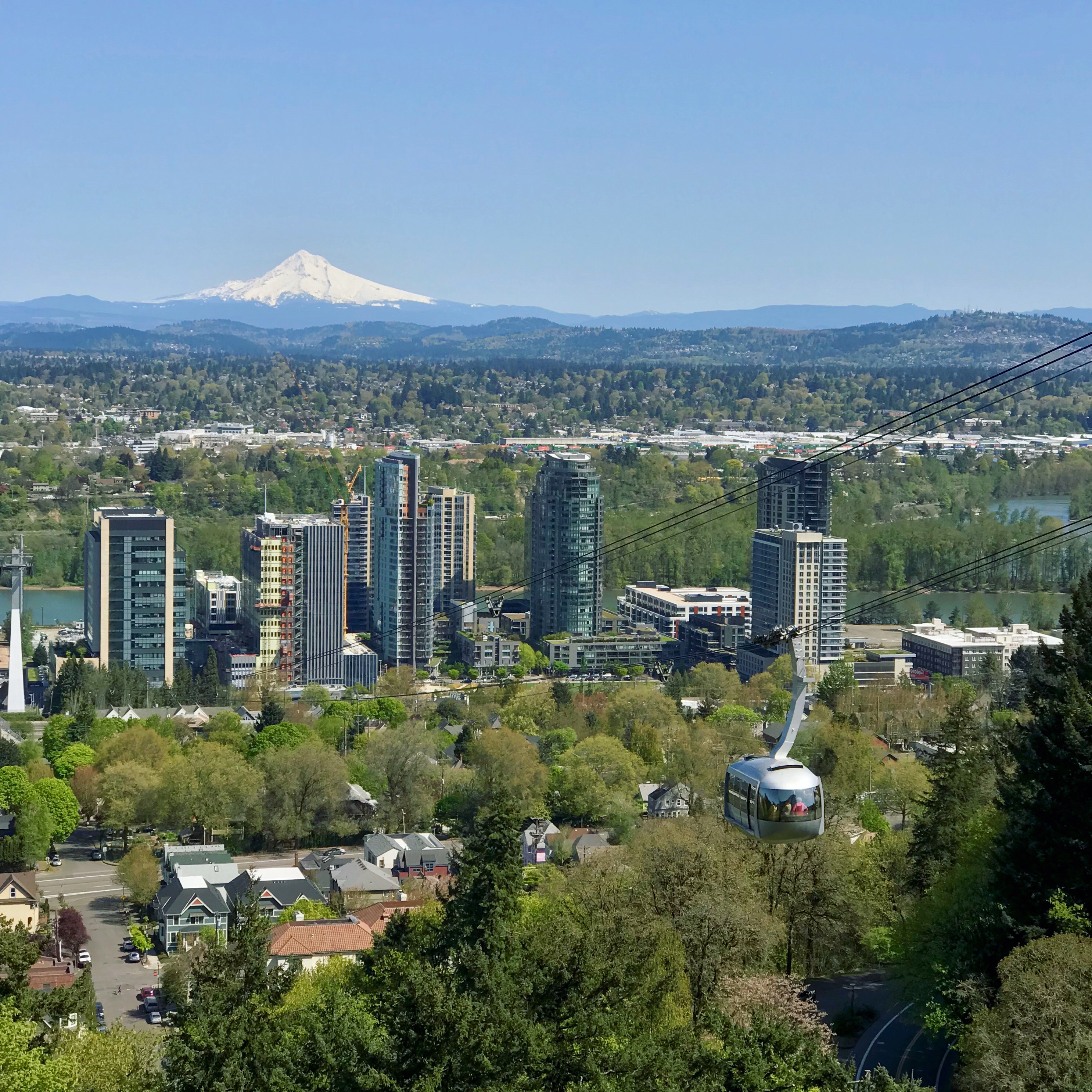 기존의 지상 도로로는 사우스 워터프론트 캠퍼스와 마컴 힐 캠퍼스를 연결하기에 충분하지 않다고 여겨짐에 따라, 포틀랜드 공중 트램이 이 둘을 연결하는 주요 연결 고리로 건설되었으며 2006년 12월 1일에 개통되었다. 초기 추정치보다 거의 4배나 증가한 트램 건설 비용을 둘러싼 논란이 있었다.[32] 트램 건설은 OHSU(4000만달러, 70%), 포틀랜드 시(850만달러, 15%) 및 사우스 포틀랜드 지역의 개발업체 및 토지 소유주의 기여로 주로 자금이 조달되었다.[33] 2006년 12월 개통 이후, 케이블카는 2007년 10월 17일에 백만 번째 승객을 수송했으며, 2014년 1월 8일에는 천만 번째 승객을 수송했다.