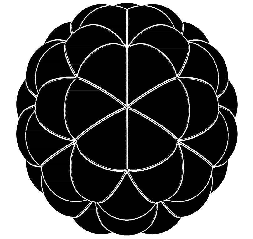 '''오방십이면체'''는 풀러렌의 모형으로, 각 (구형) 표면 조각은 탄소 원자를 나타낸다. 모두 평면으로 대체하면 오방십이면체가 생성된다. 절단된 이십면체는 풀러렌의 모형이며, 각 꼭짓점은 탄소 원자를 나타낸다.