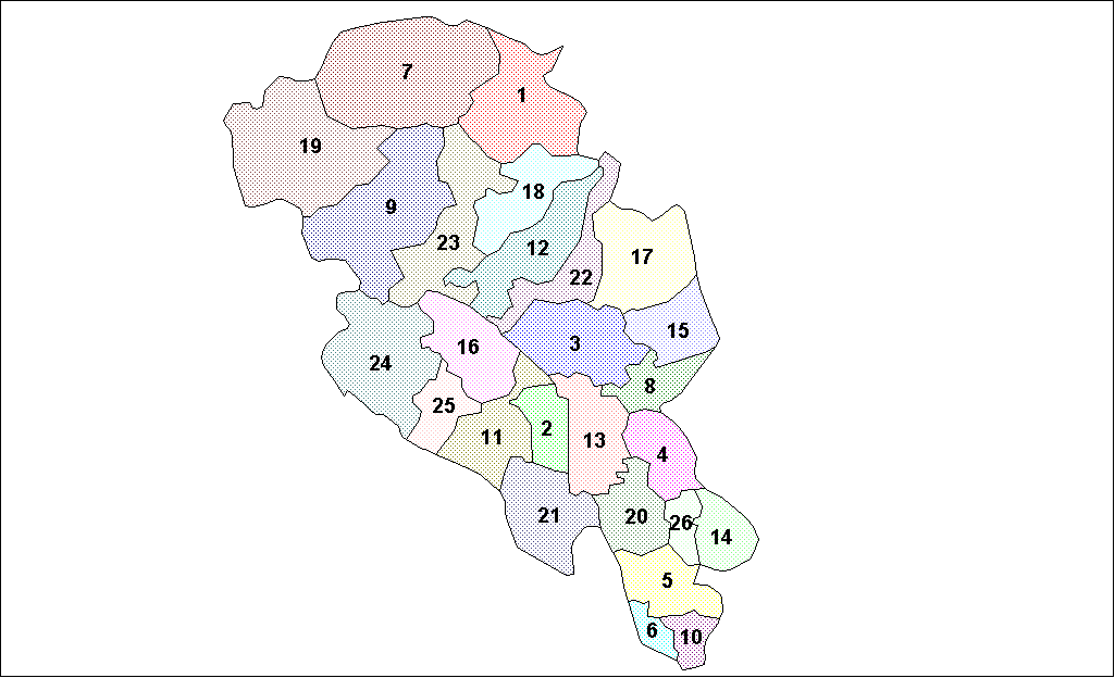 오플란주no(크리스티안스 아므트)[8]는 총 26개의 지방 자치 단체를 가지고 있었다.