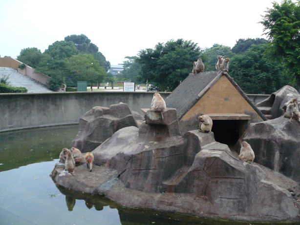 - : 옛 사카이 수족관의 시설이 그대로 남은 것. 약 50마리의 붉은털 원숭이를 사육하고 있다. 구경꾼의 먹이주기 영향으로 원숭이가 비만해져서 "메타보 원숭이"라고 불렸다.[2] 이 문제를 개선하기 위해 2009년 6월에 원숭이 산에서 완전히 우리로 덮인 짐승 사육장으로 개축되었다.[3]