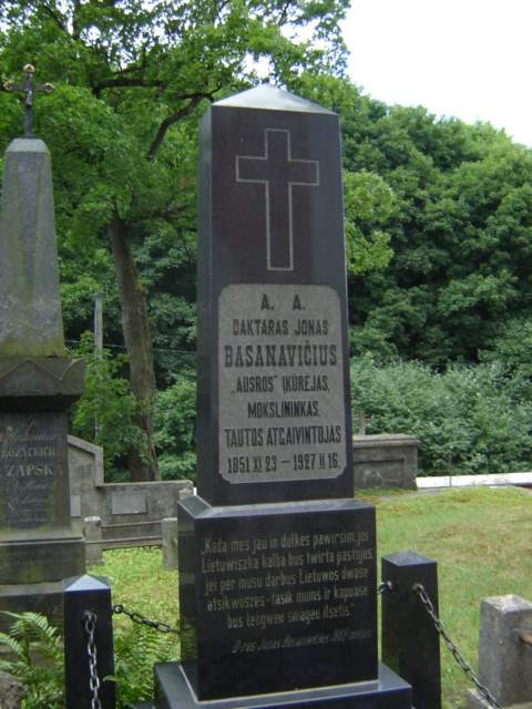 요나스 바사나비추스는 1851년 콩그레스 폴란드의 농부의 아들로 태어난 리투아니아의 민족주의자, 의사, 작가, 그리고 활동가이다. 그는 리투아니아의 언어, 문화, 역사에 대한 깊은 애정을 가지고 성장했으며, 모스크바 대학교에서 의학을 전공했다. 불가리아에서 의료 활동을 하면서 리투아니아 신문 창간을 구상했고, 1883년 리투아니아 민족 부흥의 시작으로 평가받는 신문 "아우슈라"를 창간하는 데 주도적인 역할을 했다. 1907년에는 리투아니아 과학 협회를 설립하여 리투아니아 학문의 발전에 기여했으며, 제1차 세계 대전 중에는 독립 선언을 주도했다. 바사나비추스는 리투아니아 민족 정체성 형성 및 독립에 큰 영향을 미쳤으며, 민속학 자료 수집에도 기여했다. 그는 1927년 사망했으며, 그의 업적을 기리는 기념물과 거리가 여러 곳에 존재한다.