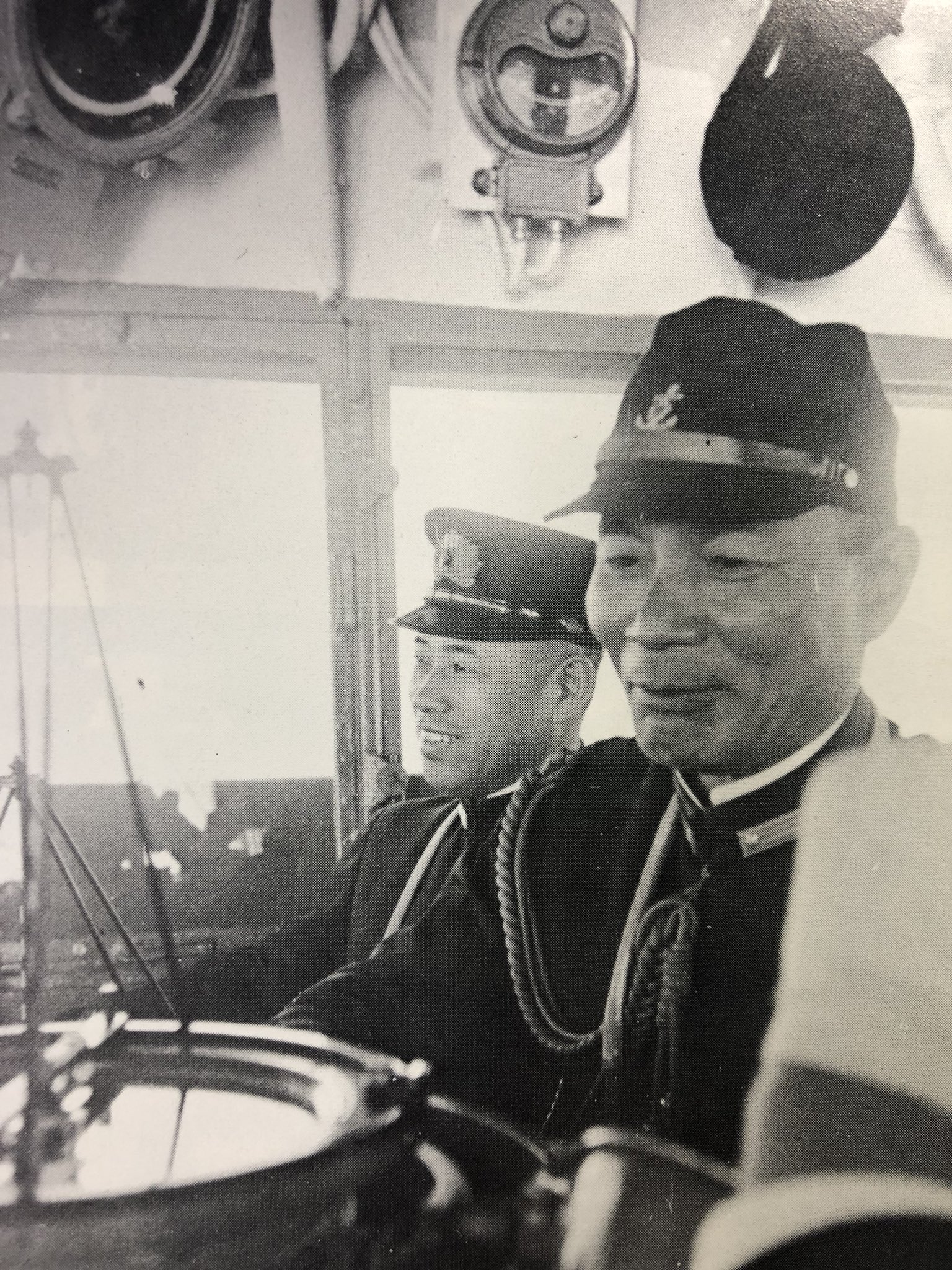 1941년 8월부터 1942년 2월까지 연합 함대 기함 나가토의 함교에 있는 야마모토 이소로쿠와 우가키 마토메
