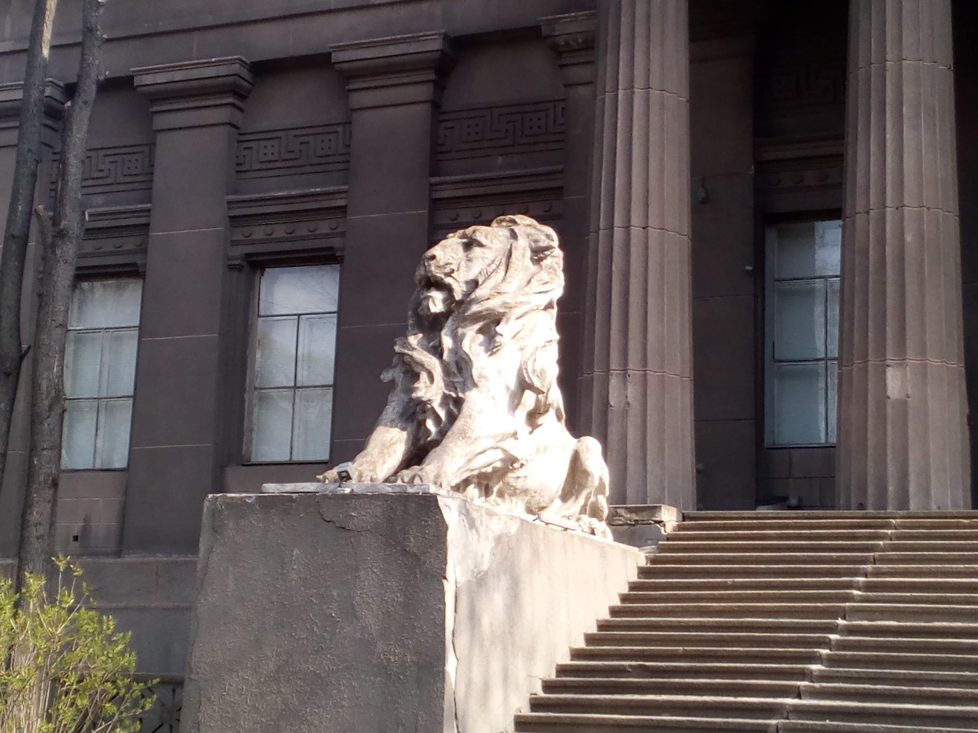 건물 외관은 신고전주의 건축 양식으로, 도리아식 기둥 6개로 된 현관과 엔타블러처, 삼각 장식, 메토프, 예술의 승리를 묘사한 프리즈 장식이 특징이다. 계단 상단에는 이탈리아 조각가 에밀리오 살라가 제작한 그리핀과 대형 콘크리트 사자상이 있다.