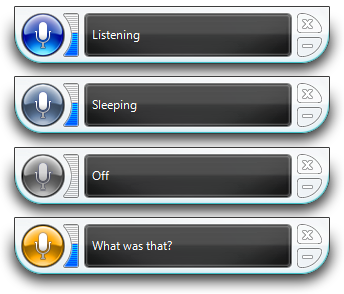 윈도우 음성 인식(WSR) 인터페이스는 사용자와의 상호작용을 위한 여러 요소로 구성된다.- 상태 영역: WSR의 현재 상태를 표시한다.