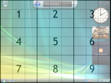 ''마우스 그리드''(MouseGrid)는 화면의 아홉 개 영역에 숫자를 표시하여 마우스 커서를 제어할 수 있게 한다. 초점을 맞출 영역의 숫자를 말하면 해당 영역이 좁혀져 원하는 인터페이스 요소에 도달한다. "클릭 ''영역 번호''" 명령으로 마우스 커서를 이동시킨 다음 클릭한다. "표시 ''영역 번호''" 명령으로 영역 내의 항목(예: 컴퓨터 아이콘)을 선택하고, ''클릭'' 명령으로 클릭할 수 있다. 여러 영역과 동시에 상호 작용할 수도 있다.[39]