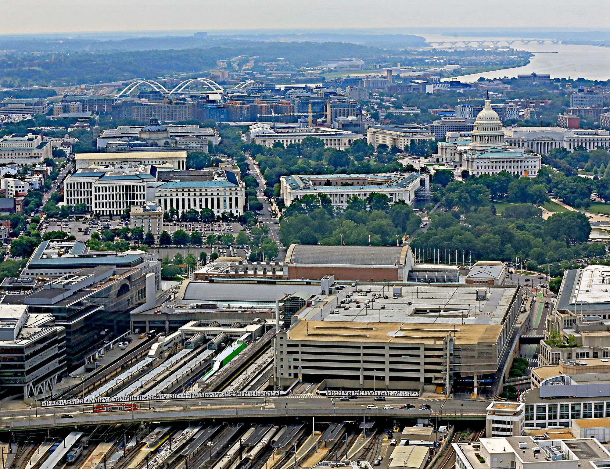- 첫째, 펜실베이니아 철도가 내셔널 몰을 점유하고 있던 약 10만 평방미터의 역 부지와 선로에서 이전함으로써, 몰을 오늘날의 모습으로 정비할 수 있게 되었기 때문이다.
