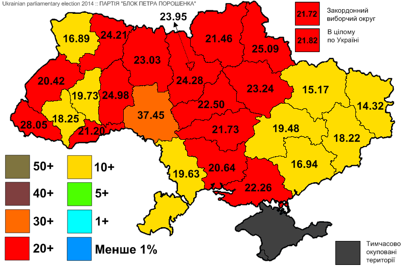 2014년 총선에서 유리 루첸코가 이끌던 페트로 포로셴코 블록은 3,437,521표(21.82%)를 득표하여 132석을 확보하고 연립 정부에 참여했다.