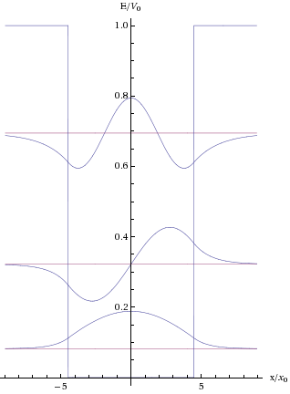 변수 | V₀ = 퍼텐셜 장벽의 높이 a = 우물의 반너비 |
