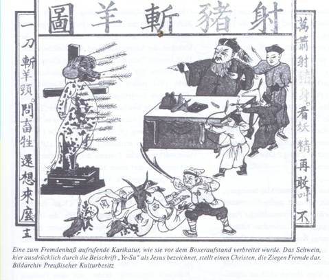 중국 북부의 주요 불만 원인은 선교 활동이었다. 의화단은 산둥성의 독일 선교사와 칭다오의 독일 조계지에 반대했다. 톈진 조약과 베이징 조약으로 외국 선교사는 중국 어디에서든 설교하고 교회를 건설할 토지를 구매할 수 있게 되었다. 가톨릭 교회로 대체된 중국 사찰 몰수에 대한 대중의 분노가 컸으며, 이는 반풍수적인 행위로 여겨졌다. 독일 철도와 전신선을 건설하기 위해 중국 묘지를 파괴한 것도 중국인들의 불만을 샀다. 독일 철도에 대한 중국의 항의에 독일군은 시위자들을 총으로 쏘았다.