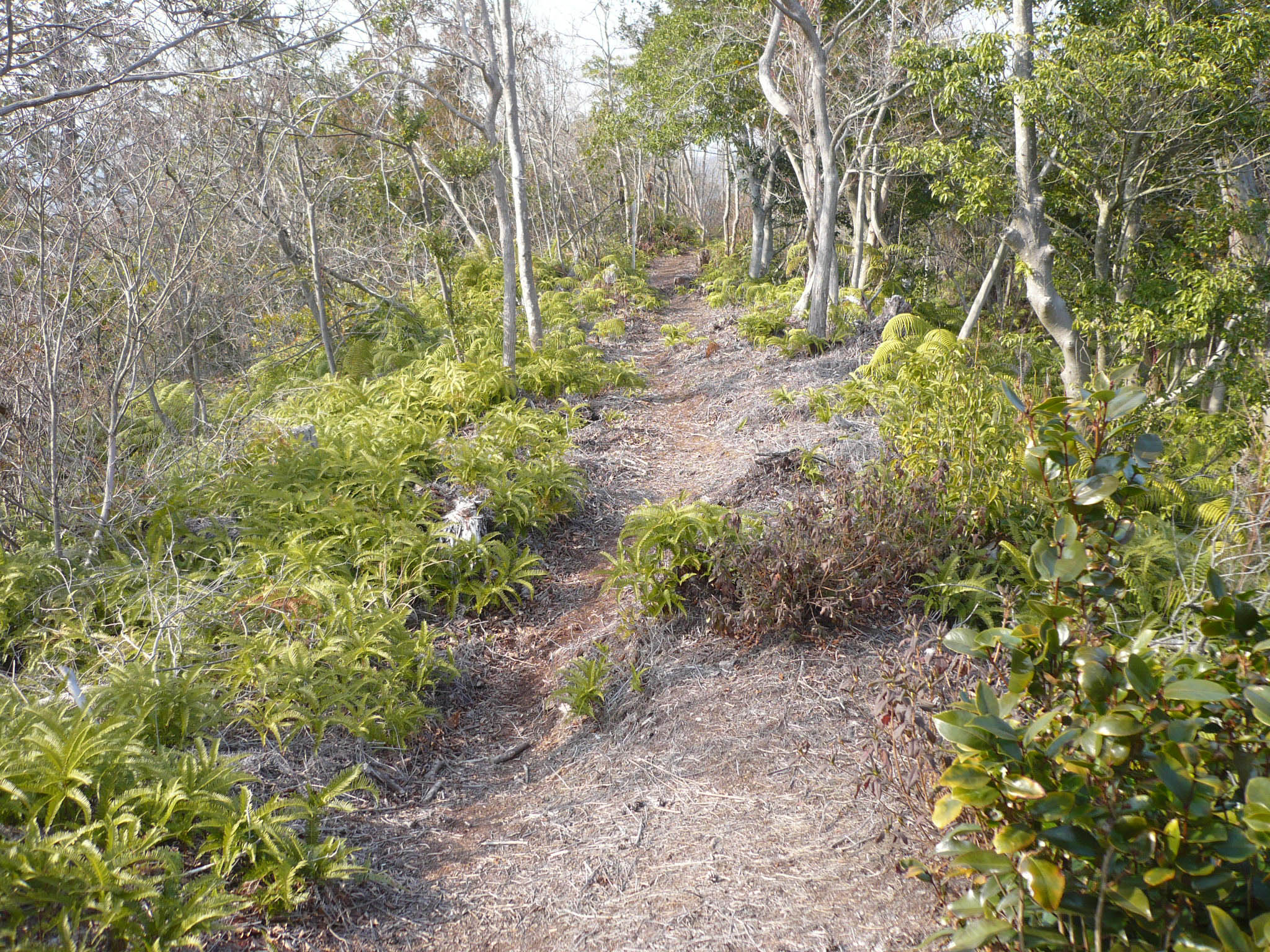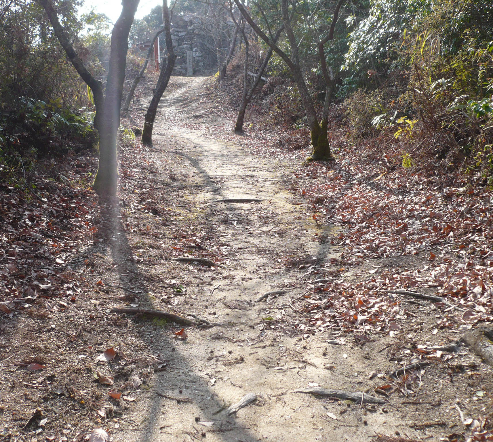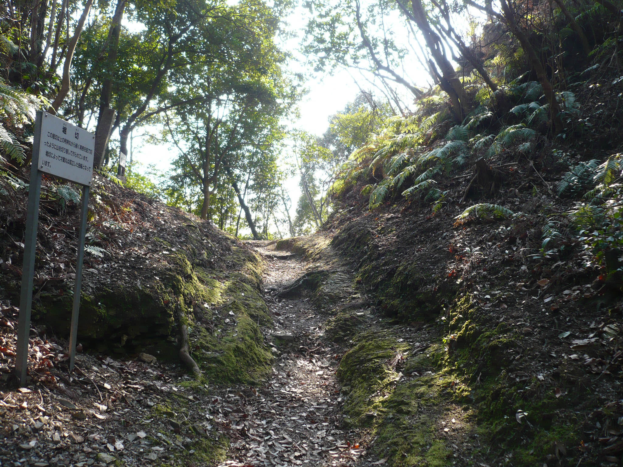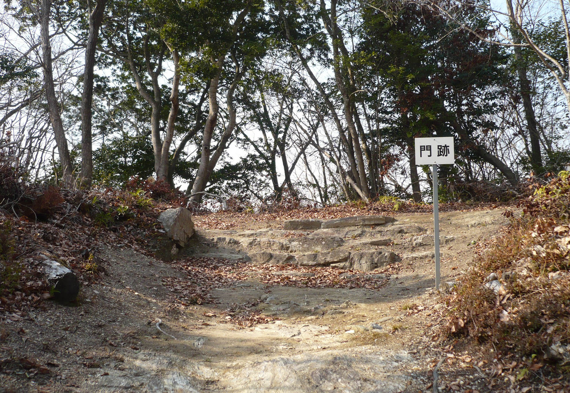 현재의 등산로도 당시 등성길 중 하나였을 가능성이 있지만, 성의 정문인 대문(大手門)은 현재 등산로와 다른 위치인 덴만다니(天満谷) 계곡에 있었을 것으로 추정된다. 계곡 입구 북쪽 마을에는 가신단 저택으로 추정되는 평지가 계단 형태로 배치되어 현재도 주택지로 남아 있다. 계곡을 따라 올라가는 길은 보존 상태가 좋은 곳에서는 폭이 2m에 달해 현재의 등산로보다 넓으며, 물자 반입로로도 사용되었을 것으로 보인다. 더 올라가면 길이 갈라져 서쪽과 동쪽의 창고 구역으로 연결된다. 뒷문(搦手門)은 대문의 반대편인 남쪽 능선에 있었다고 『명동군사(名東郡史)』에 기록되어 있다. 이 외에도 해자 등의 구조를 통해 출격이나 철수에 사용된 길이 다수 있었을 것으로 추측되지만, 길은 구루와와 달리 대규모 공사가 필요 없어 매몰되기 쉽고 폐성 후의 길과 구별하기 어려워 정확한 경로는 파악하기 어렵다. 현재 정비된 등산로 외에 추정되는 대문과 뒷문 쪽 길은 정비되지 않았다.