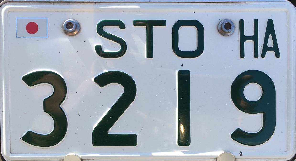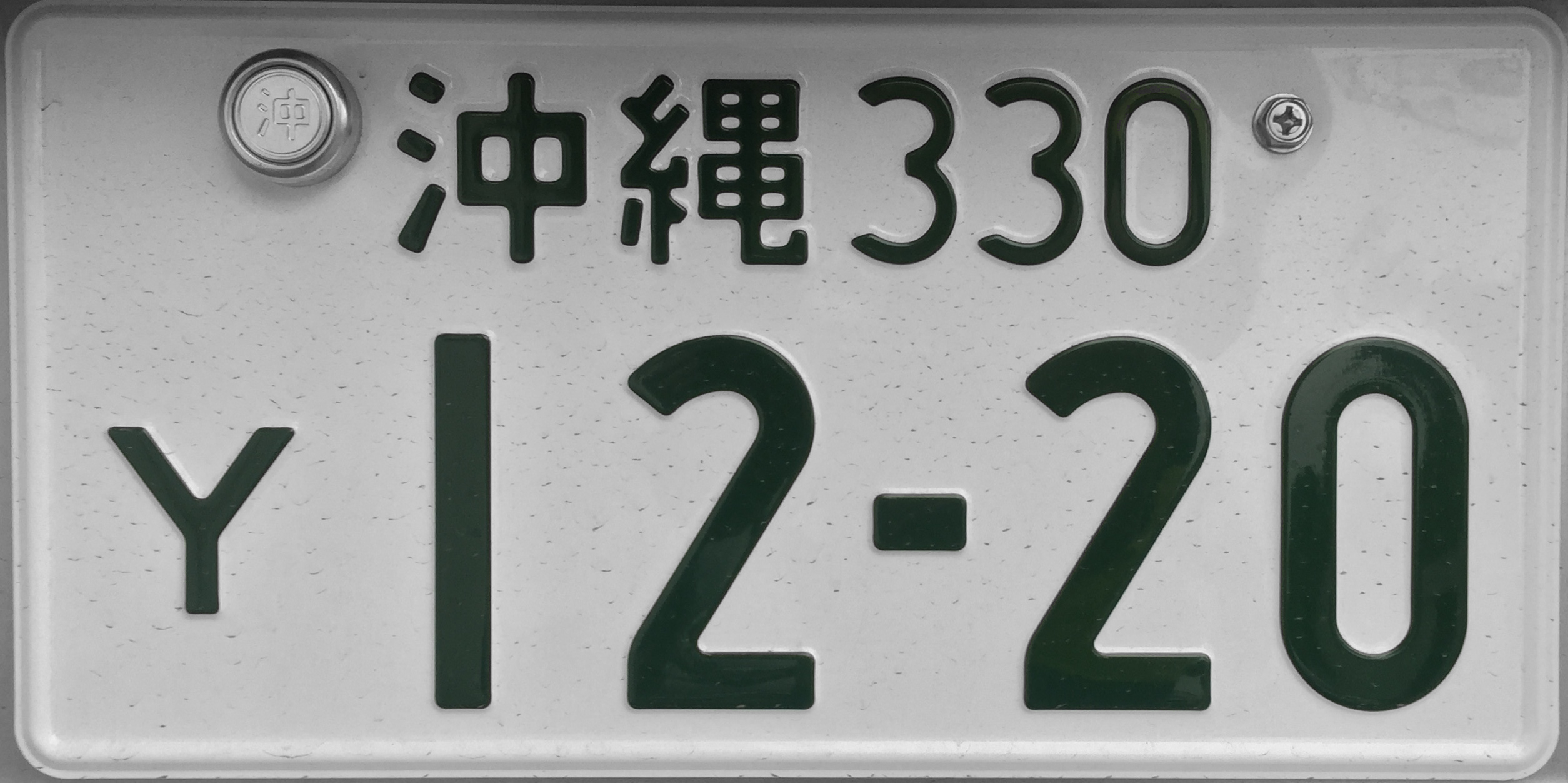 표기 | "XXX 가/사/아/라 YY-ZZ" 또는 "XXX 와/레 YY-ZZ" (자가용 차량) "XXX 숫자 YY-ZZ" (영업용 차량) "KXX 가/사/아/라 YY-ZZ" (경차) XXX: 차량 종류 번호 (1자리에서 3자리) 가/사/아/라/와/레: 문자 (히라가나 또는 로마자) YY-ZZ: 일련 지정 번호 (1자리에서 4자리) |