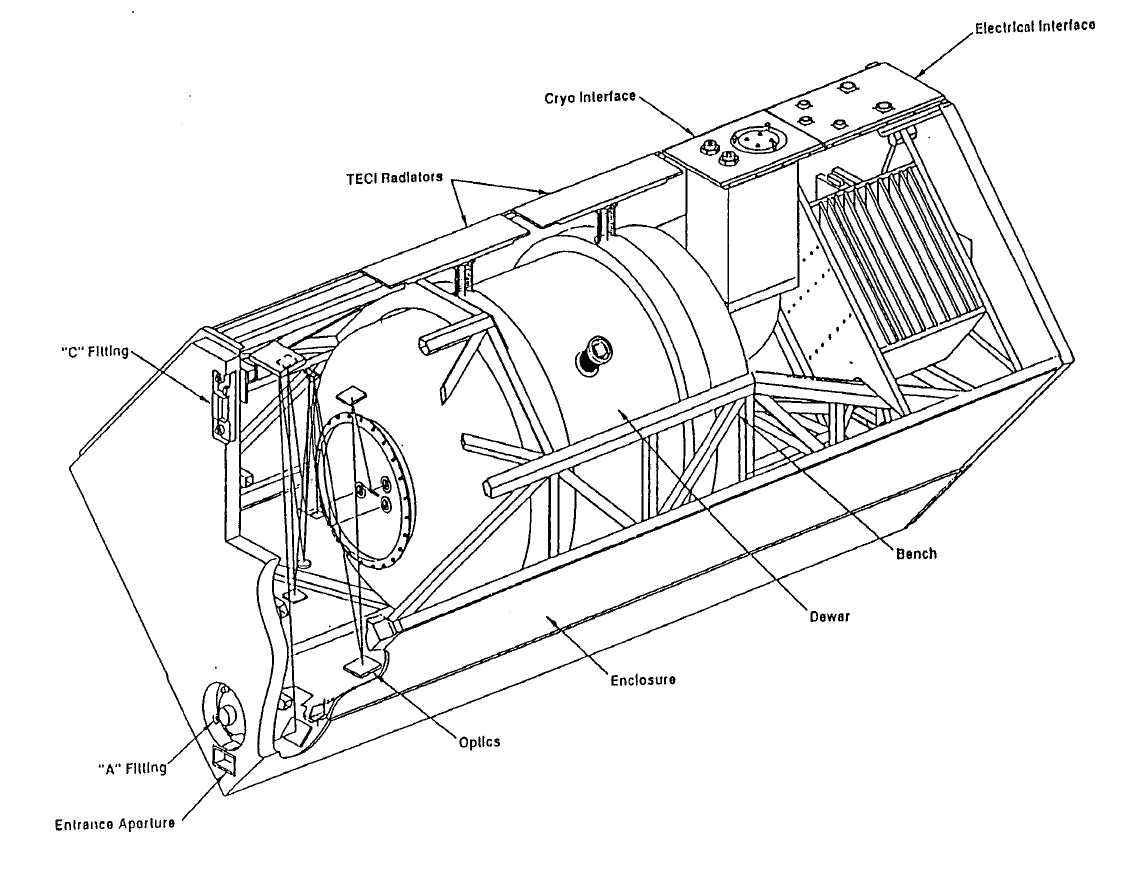 적외선 천문학 관측 장비에는 긴 적분 시간을 위한 매우 낮은 암전류, 저잡음 판독 회로, 그리고 높은 픽셀 수 등의 특별한 사양이 요구된다.저온은 종종 소모성 냉각제를 사용하여 달성된다.[14] 우주 임무는 냉각제 공급이 소진되면 종료되거나 "따뜻한" 관측으로 전환되었다.[14] 예를 들어, WISE는 2010년 10월에 발사된 지 약 10개월 만에 냉각제가 소진되었다.[14]