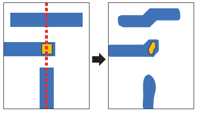 전자총(에미터)에서 방출되는 전자빔을 성형 어퍼처라고 하는 직사각형 구멍을 여러 단계 통과시켜 전자빔 형상을 직사각형으로 바꾸고, X-Y 스테이지의 이동과 동기시키면서 연속 조사하여 패턴을 그리는 것을 특징으로 한다. 스팟빔에 비해 미세한 패턴은 작성할 수 없지만, 1샷당 작성 면적이 가변적이기 때문에 처리량이 좋으며, 레티클의 양산 공정용이나 양산용 LSI를 위한 레티클 작성에 사용된다.2. 3. 캐릭터 프로젝션 (CP) 방식 빔