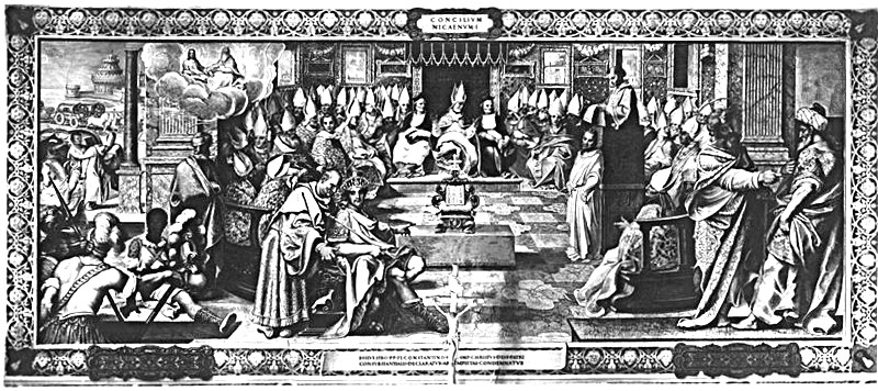 콘스탄티누스 1세는 로마 제국의 통일을 위해 기독교의 단결을 중요하게 생각했다. 그러나 당시 교회 내부에는 많은 교리 대립이 있었고, 이를 해결하기 위해 325년 니케아에서 공의회를 소집했다.[63]제1차 니케아 공의회 소집의 주요 원동력은 예수의 본성, 기원, 그리고 하나님 아버지와의 관계에 관한 알렉산드리아 기독교 성직자들 사이의 신학적 논쟁이었다. 이 논쟁은 알렉산드리아의 알렉산데르 대주교와 사제 아리우스가 중심 인물이었다.