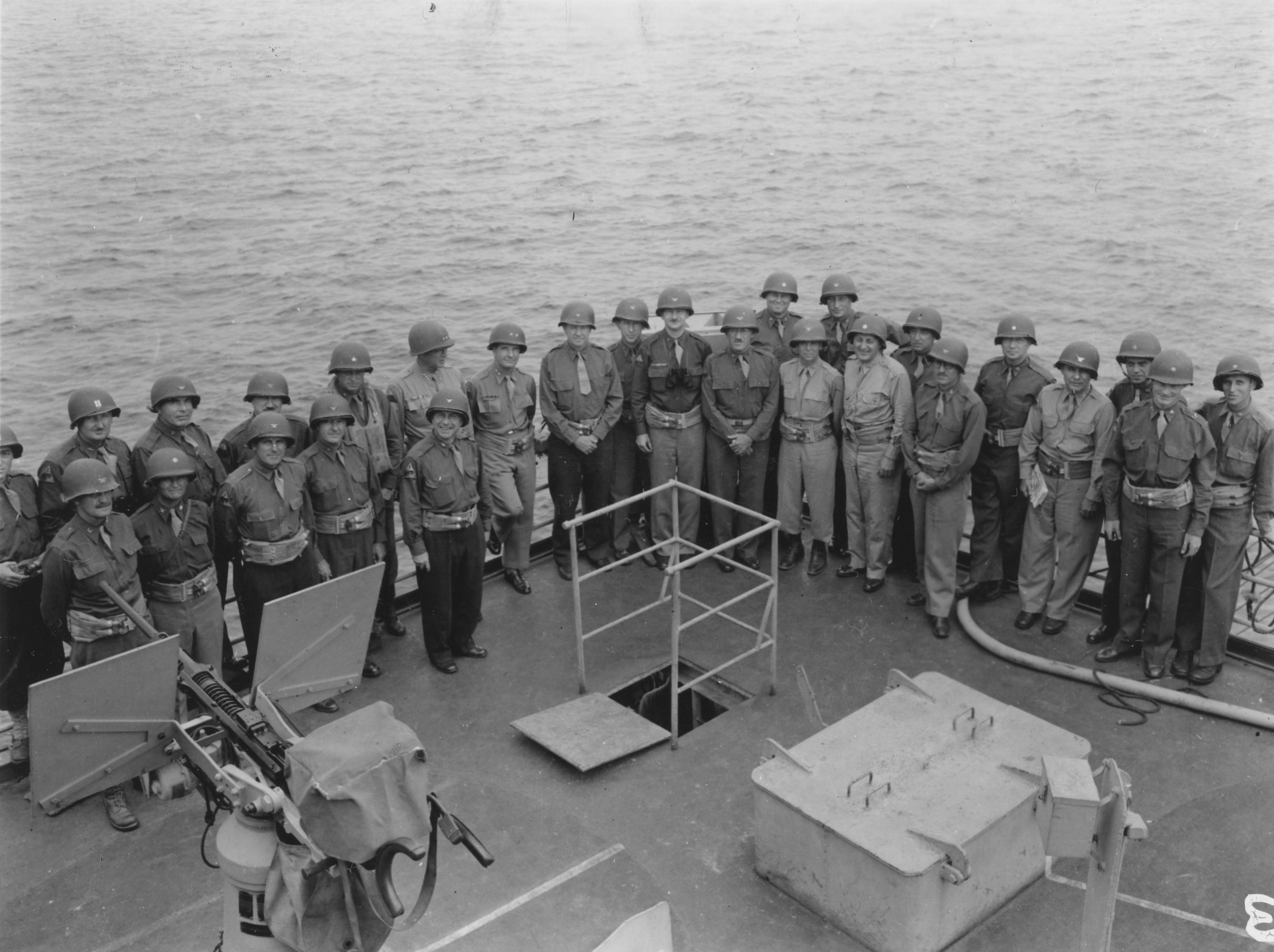 1943년 6월/7월 시칠리아로 향하는 SS 몬로비아에 탑승한 패튼 중장의 제7군 참모의 모습.