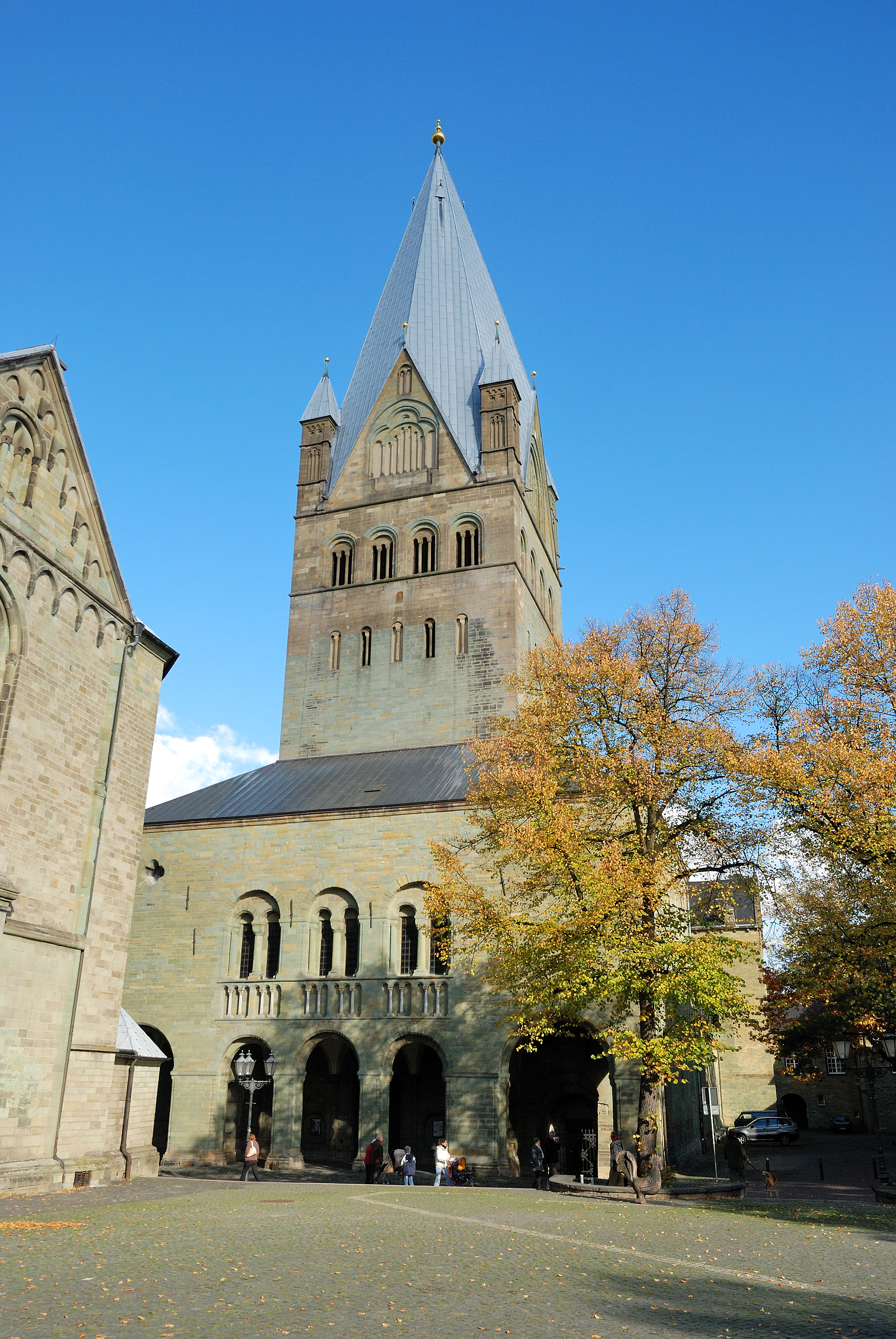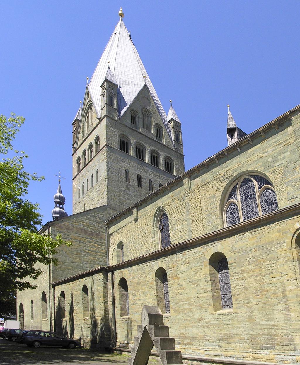 이 성당은 현지 녹색 사암으로 만들어진 초기 중세 로마네스크 건축의 한 예이다. 거대한 사각형 종탑이나 첨탑은 구시가지 중심에서 솟아오르며 조스터 뵈르데의 랜드마크로, 수 킬로미터 밖에서도 볼 수 있다.