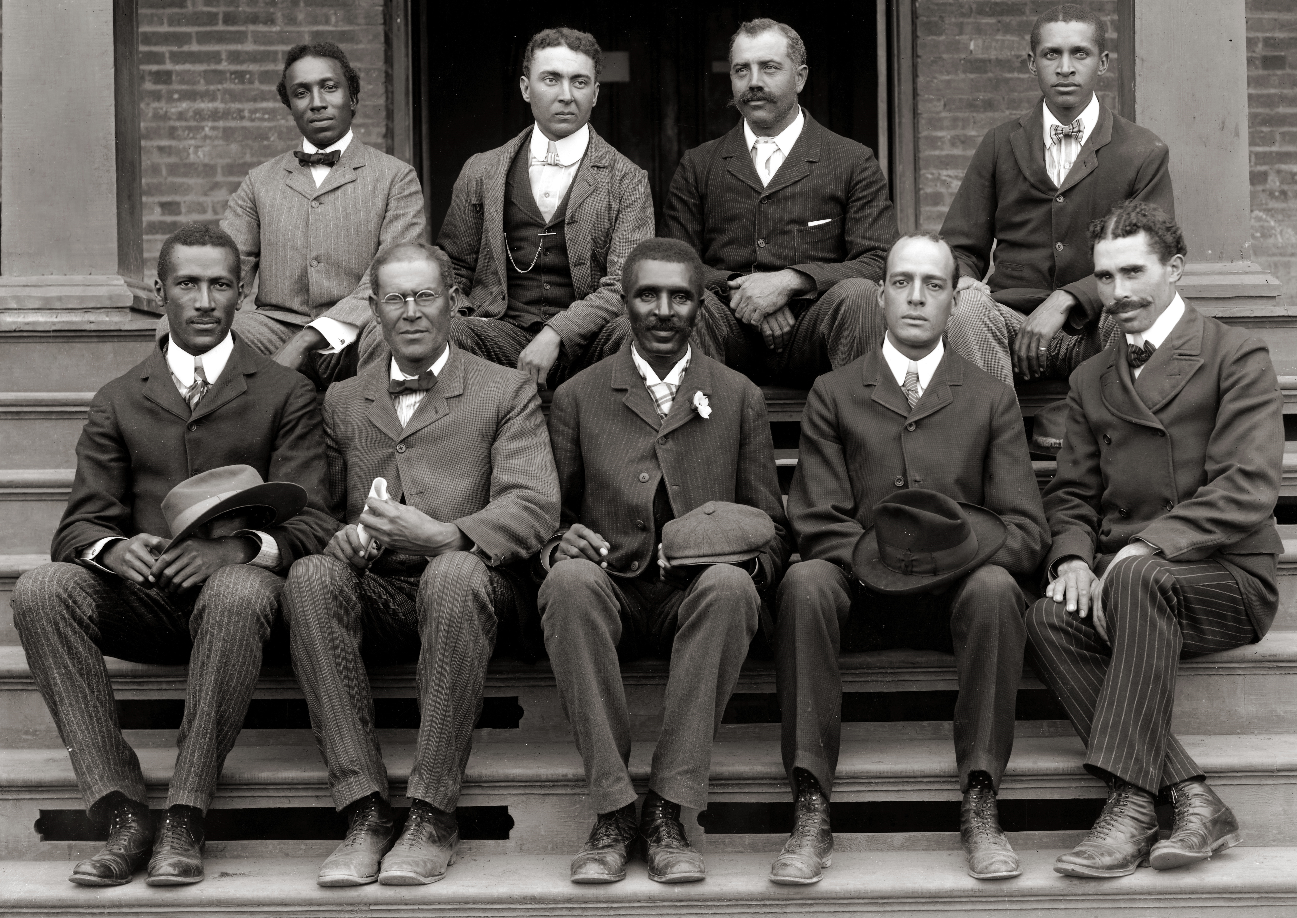 프랜시스 벤자민 존스턴이 촬영한 조지 워싱턴 카버(1902년경, 터스키기 연구소 동료 교수진과 함께).